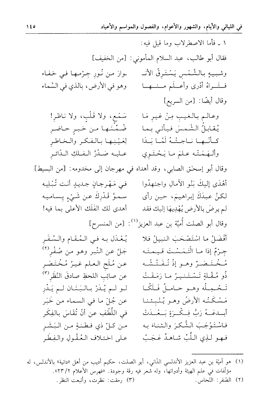 فأما الاصطرلاب وما قيل فيه . فقال أبو طالب ، عبد السلام المأموني :
