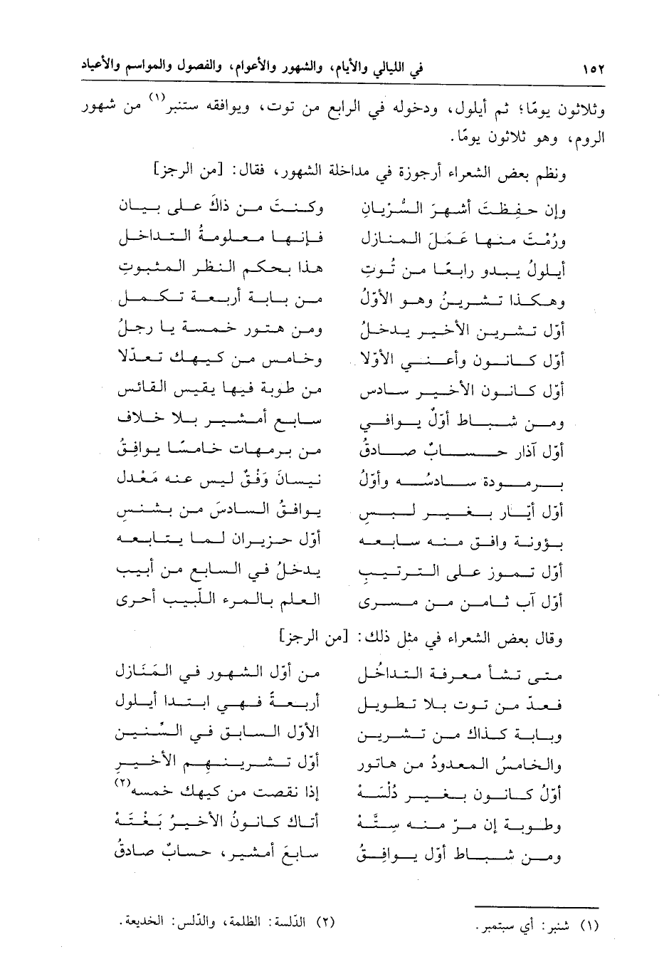 ونظم بعض الشعراء أرجوزة في مداخلة الشهور ، فقال :