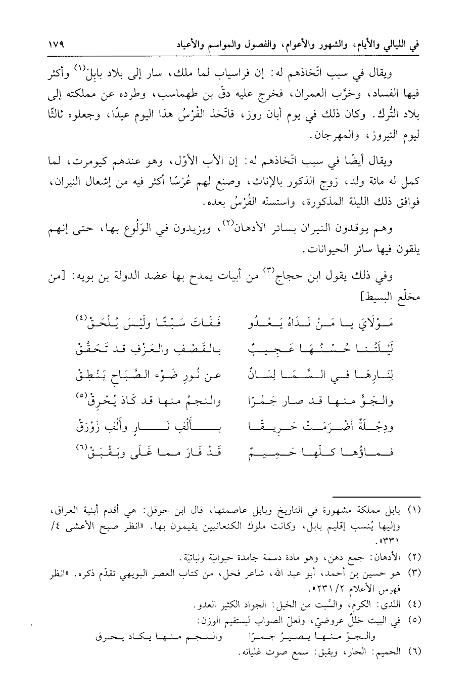 وفي ذلك يقول ابن حجاج من أبيات يمدح بها عضد الدولة بن بويه :