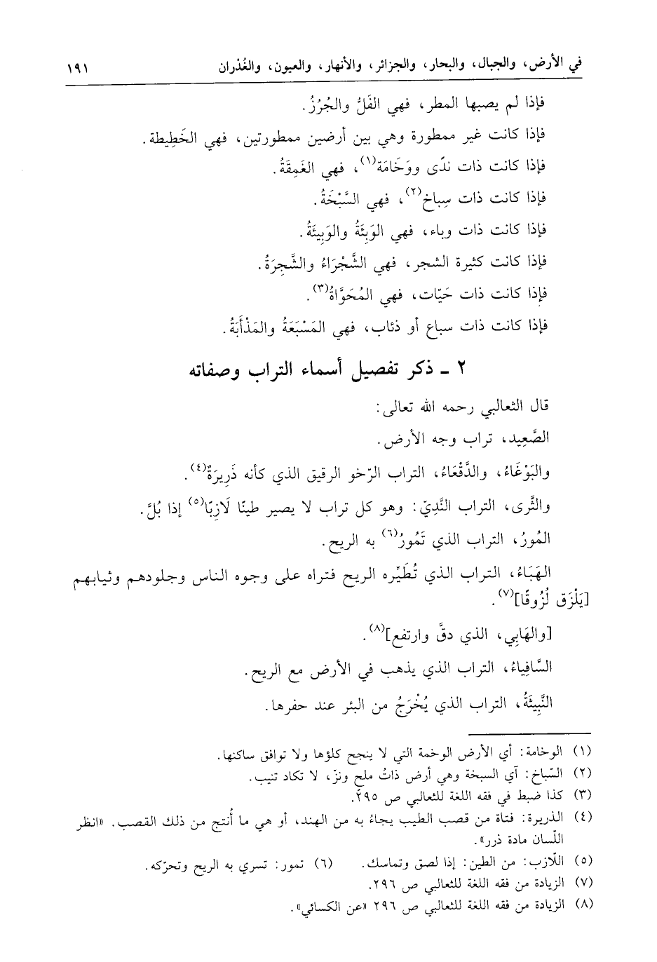 - ذكر تفصيل أسماء التراب وصفاته