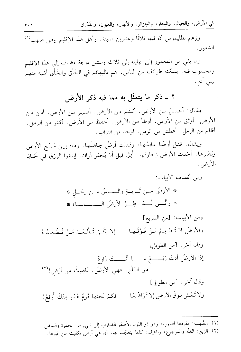 - ذكر ما يتمثل به مما فيه ذكر الأرض