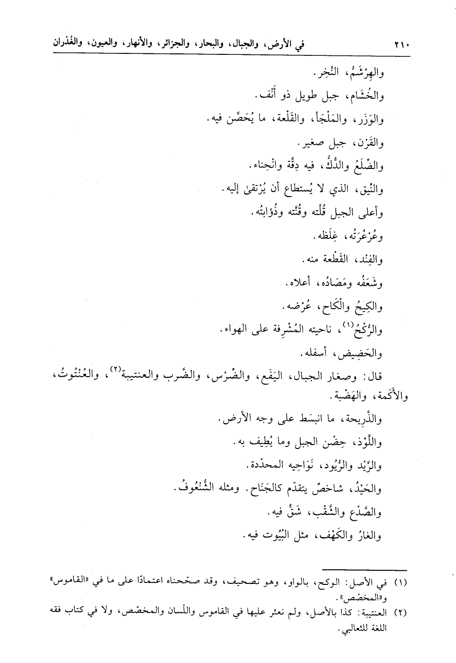 قال : وصغار الجبال ، اليفع ، والضرس ، والضرب ، والعنتبية ، والعنتوت ، والأكمة ، والهضبة .