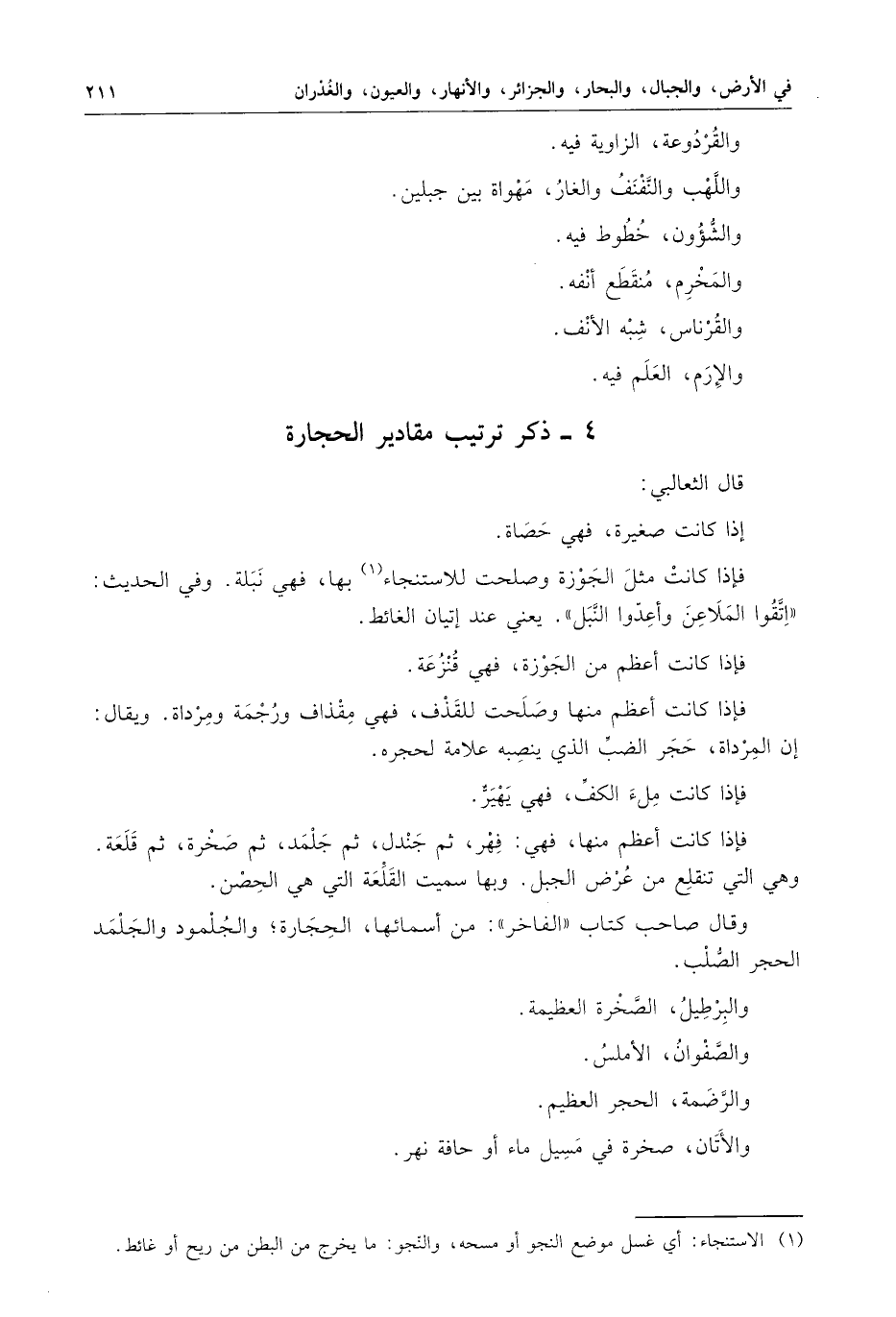 قال الثعالبي : إذا كانت صغيرة فهي حصاة .