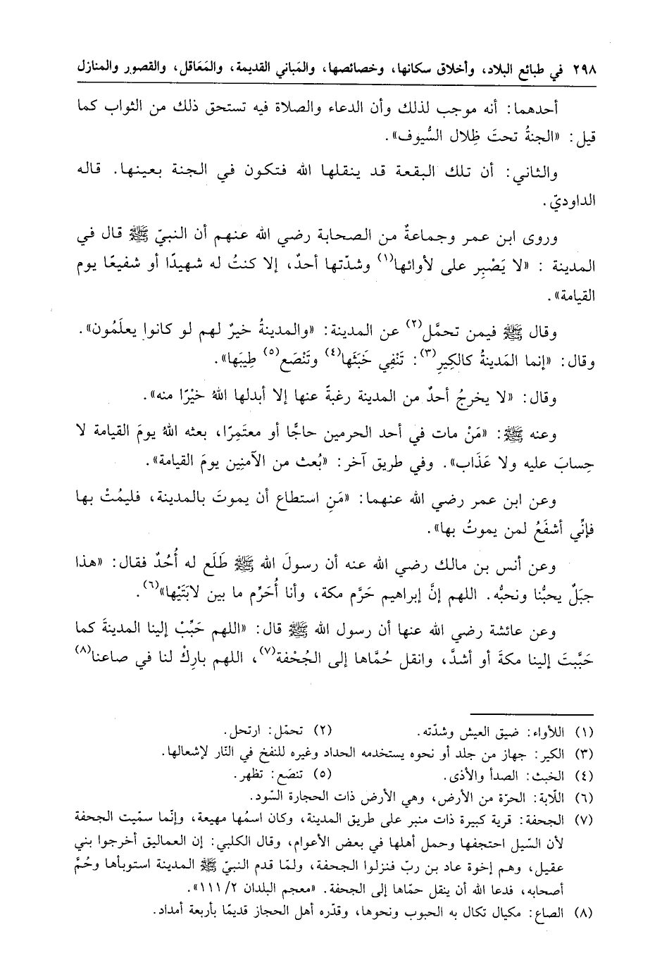 وقال ( صلى الله عليه وسلم ) فيمن تحمل عن المدينة : والمدينة خير لهم لو كانوا يعلمون . وقال : إنما المدينة كالكير : تنفي خبثها وتنصع طيبها . وقال : لا يخرج أحد من المدينة رغبة إلا أبدلها الله خيراً منه .