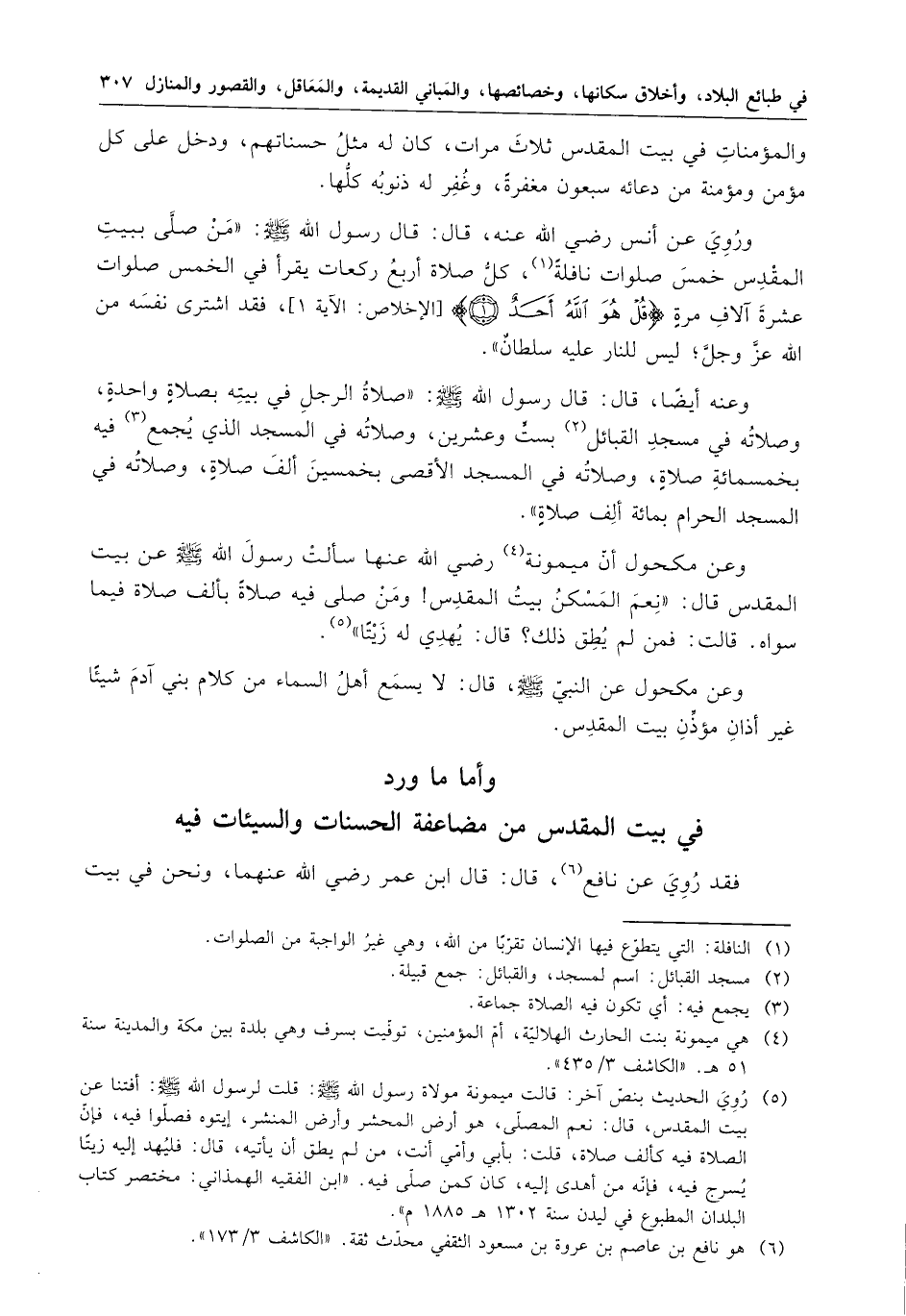 وأما ما ورد في بيت المقدس من مضاعفة الحسنات والسيئات فيه