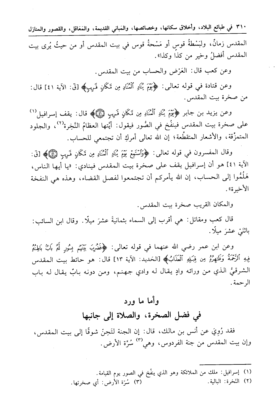 المقدس زمان ولبسطة قوس أو مسحة قوس في بيت المقدس أو من حيث يرى بيت المقدس خير من كذا وكذا .