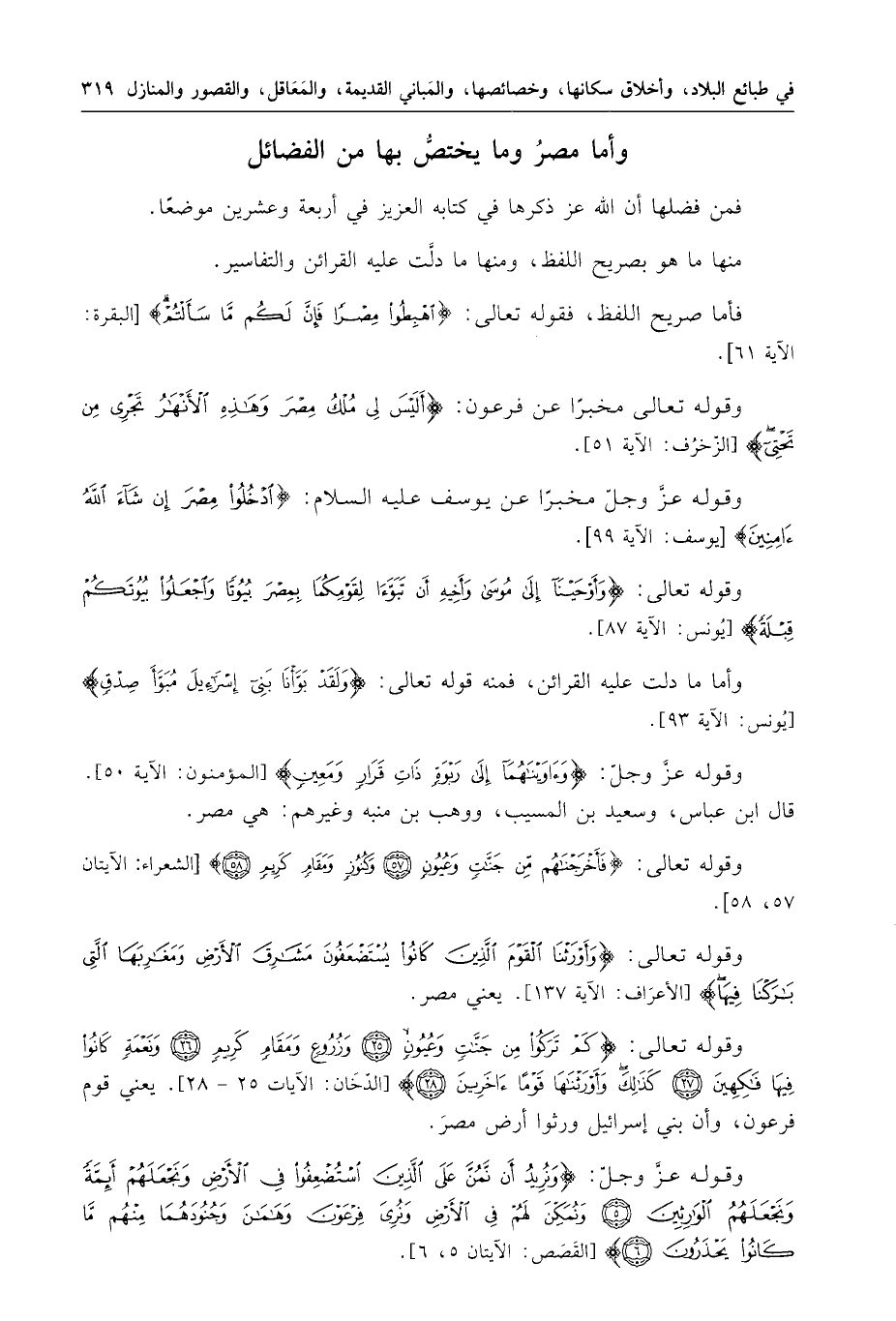 فمن فضلها أن الله عز وجل ذكرها في كتابه العزيز في أربعة وعشرين موضعا . منها ما هو بصريح اللفظ . ومنها ما دلت عليه القرائن والتفاسير .