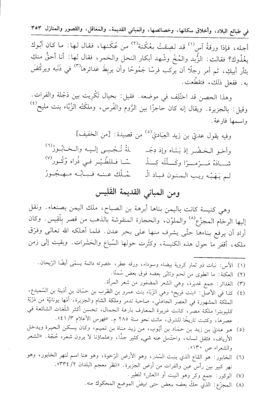 وفيه يقول عدي بن زيد العبادي من قصيدة :