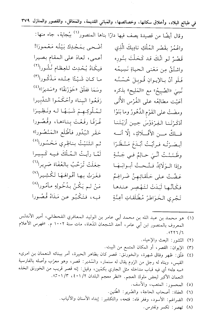 وقال أيضاً من قصيدة يصف فيها دارا بناها المنصور ببجاية ، جاء منها :