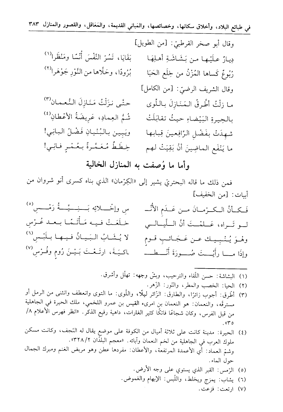 ديارٌ عليها من بشاشة أهلها . . . بقايا ، تسر النفس أنساً ومنظرا .