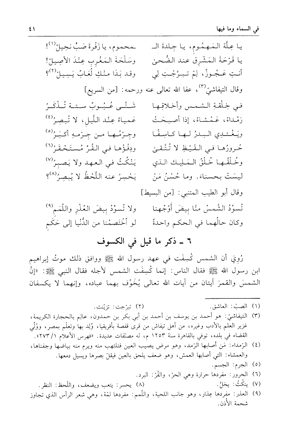 في خلقه الشمس وأخلاقها . . . شتى عيوبٌ ستة تذكر .