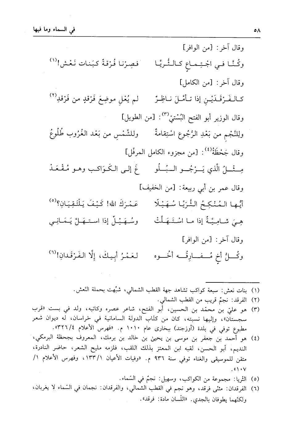 وكنا في اجتماع كالثريا ، . . . فصرنا فرقة كبنات نعش