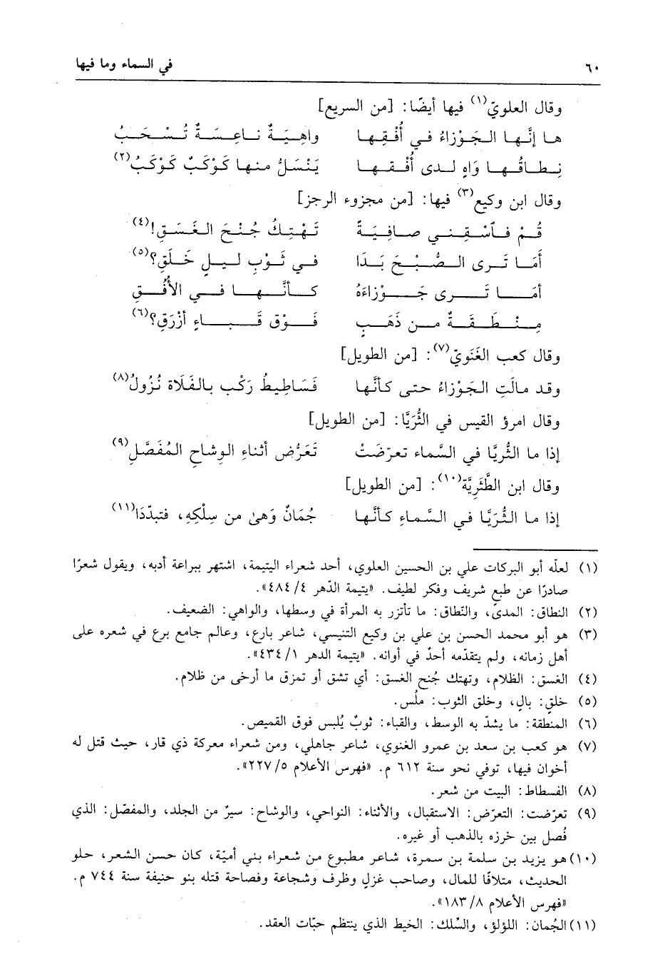 وقد مالت الجوزاء حتى كأنها . . . فساطيط ركب بالفلاة نُزُولُ .