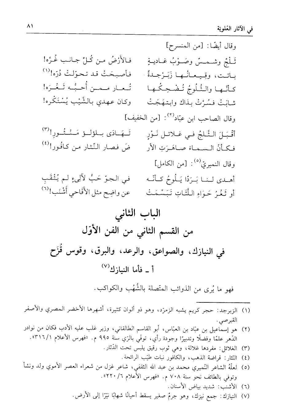الباب الثاني : من القسم الثاني من الفن الأول النيازك ، والصواعق والرعد ، والبرق ، وقوس قزح