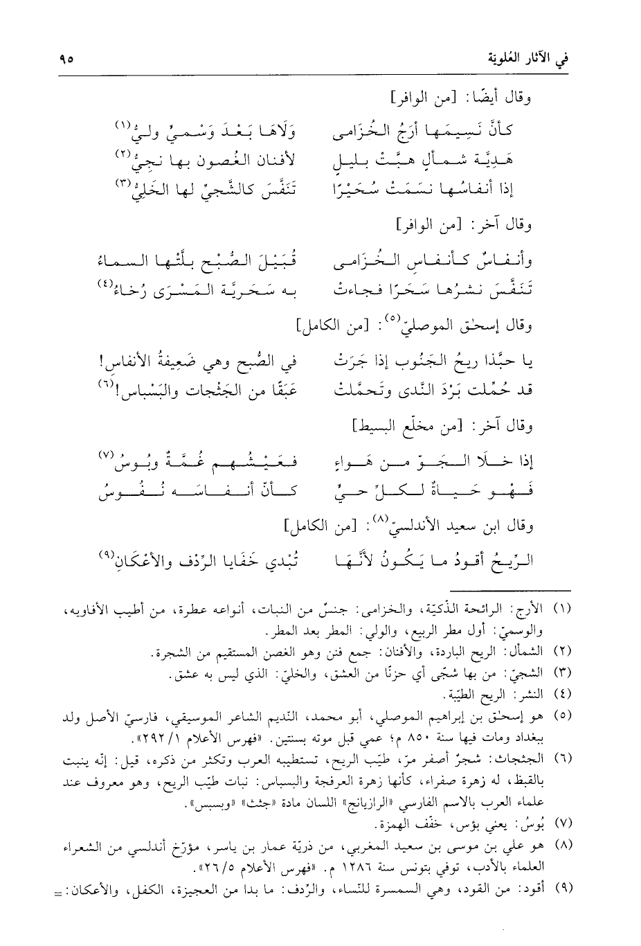 قد حملت برَدَ الندى وتحملَّت . . . عبقاً من الجثجاث والبسباس