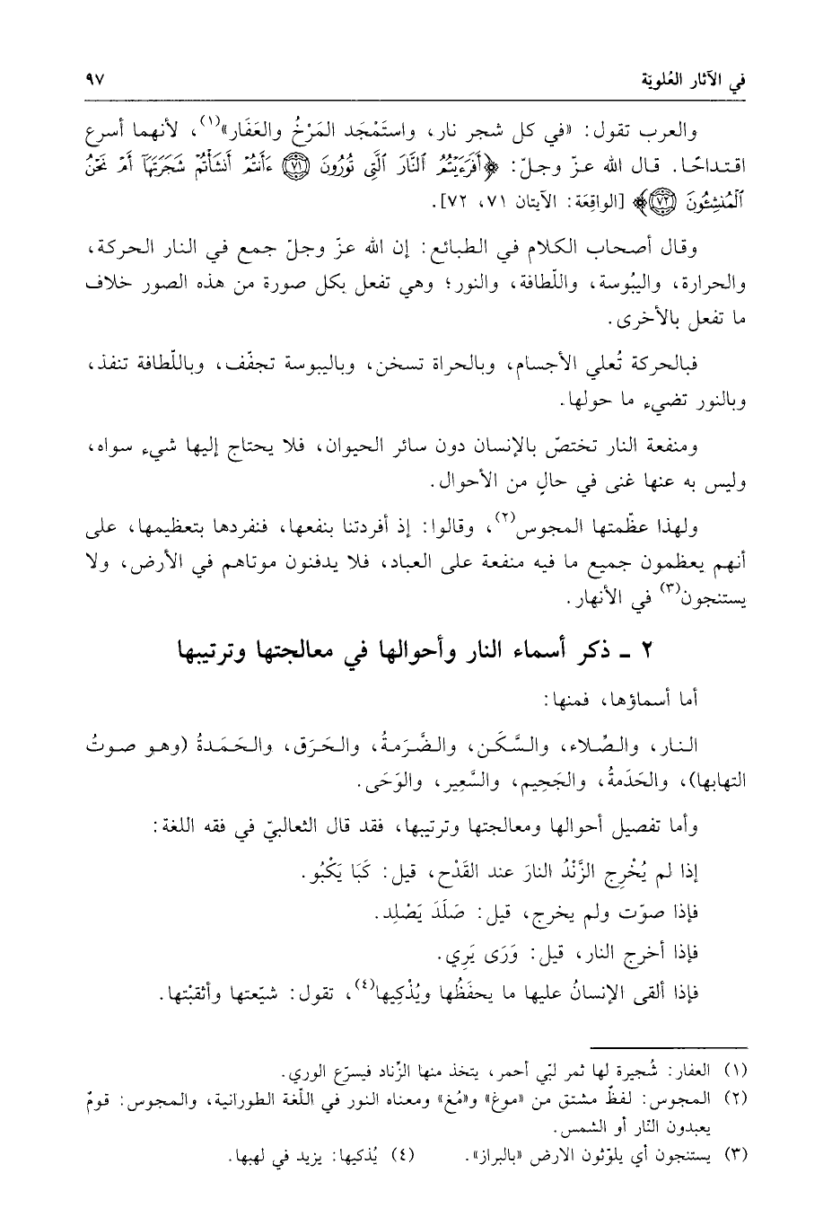 - ذكر أسماء النار " وأحوالها في معالجتها وترتيبها