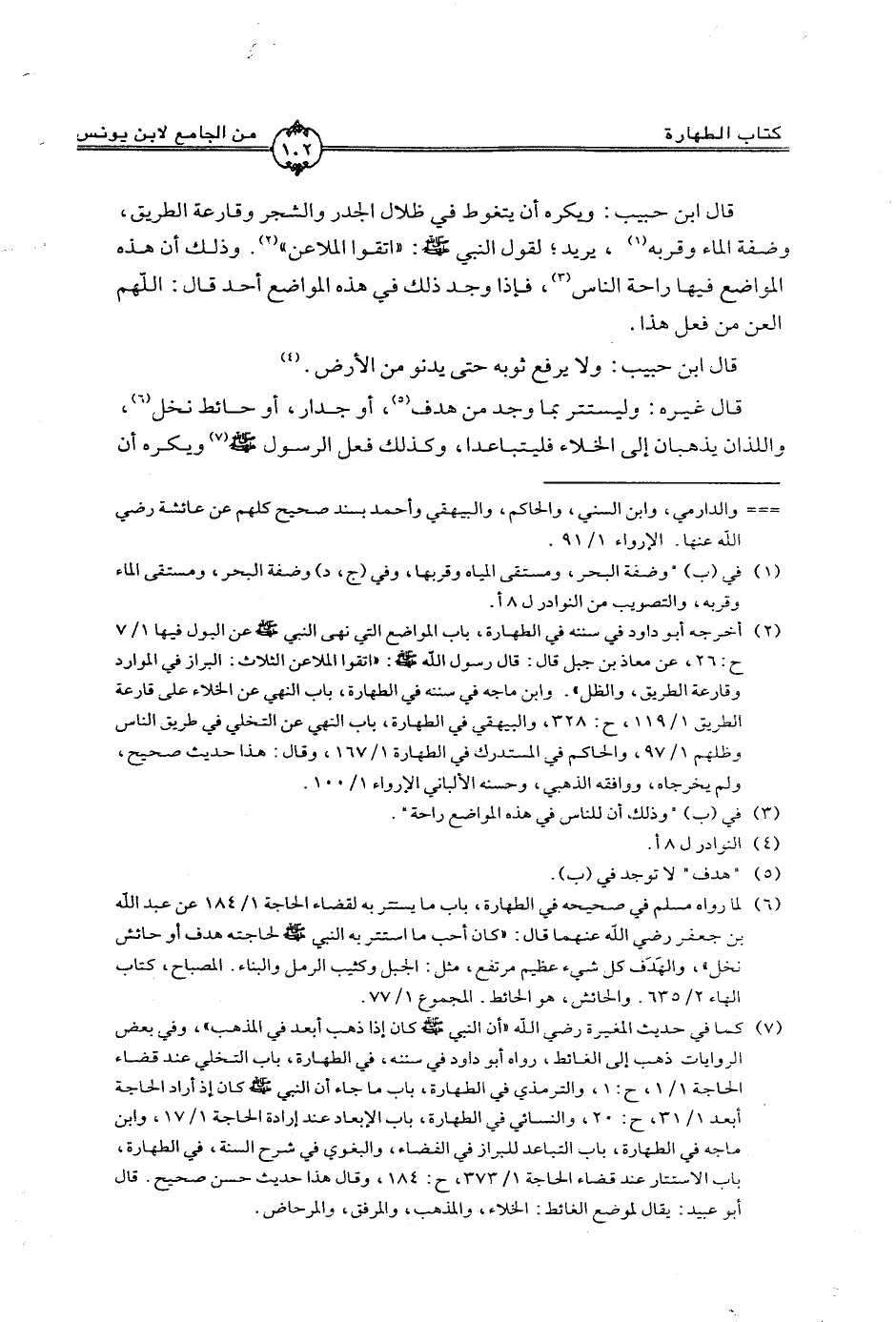 قال ابن حبيب: ويكره أن يتغوط في ظلال الجدر والشجر وقارعة الطريق, وضفة الماء وقربه, يريد؛ لقول النبي: - صلى الله عليه وسلم - ((اتقوا الملاعن)). وذلك أن هذه المواضع فيها راحة للناس, فإذا وجد ذلك في هذه المواضع أحد قال: اللهم العن من فعل هذا.