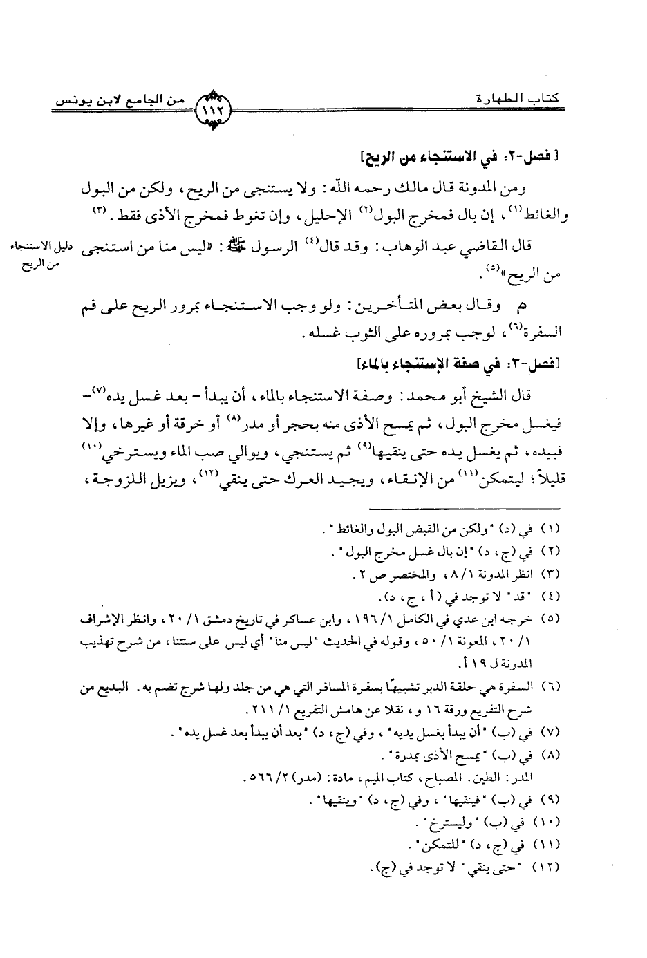 ومن المدونة قال مالك رحمه الله: ولا يستنجى من الريح, ولكن من البول والغائط, إن بال فمخرج البول الإحليل, وإن تغوط فمخرج الأذى فقط.