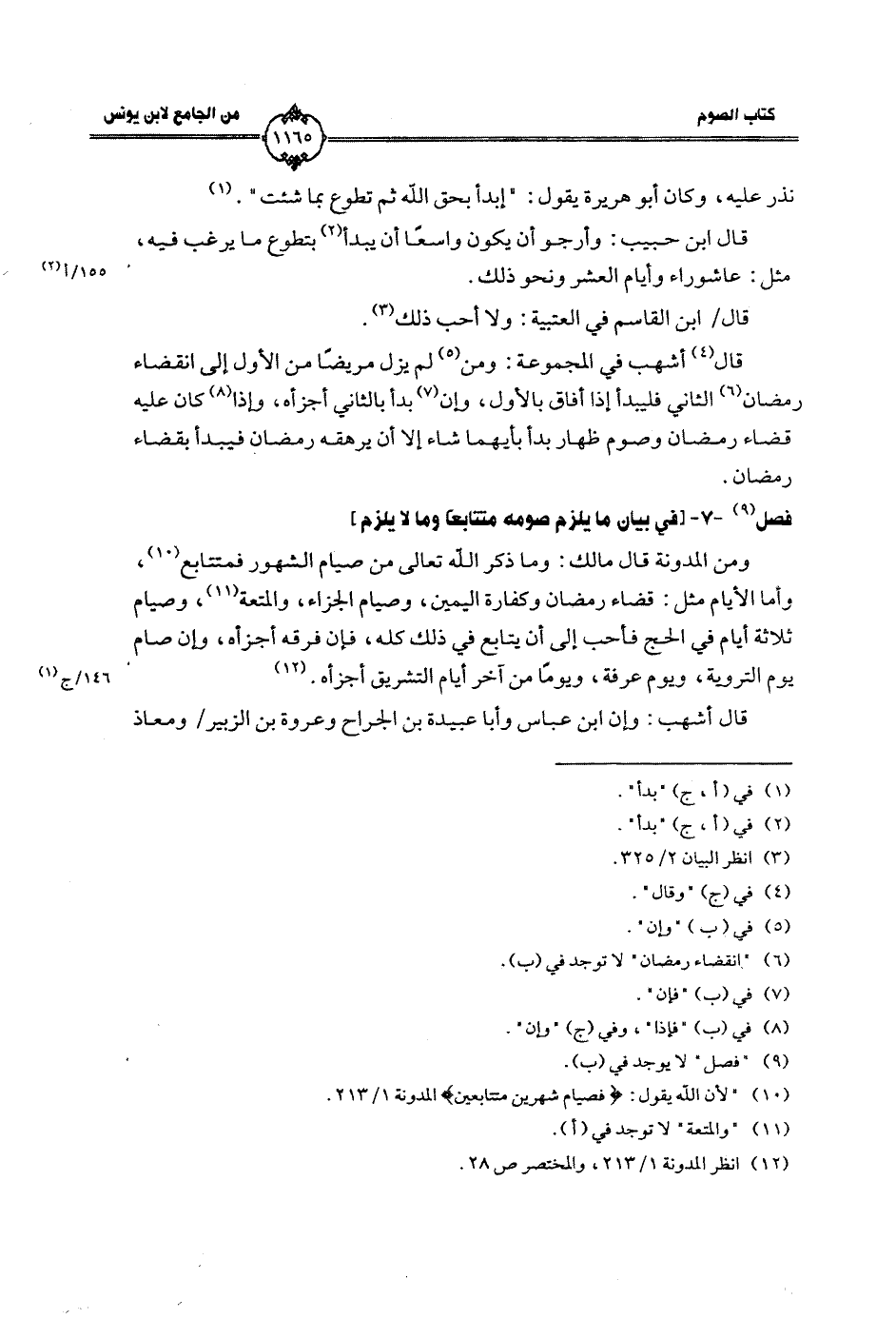 قال أشهب: وإن ابن عباس وأبا عبيدة بن الجراح وعروة بن الزبير/ ومعاذ
