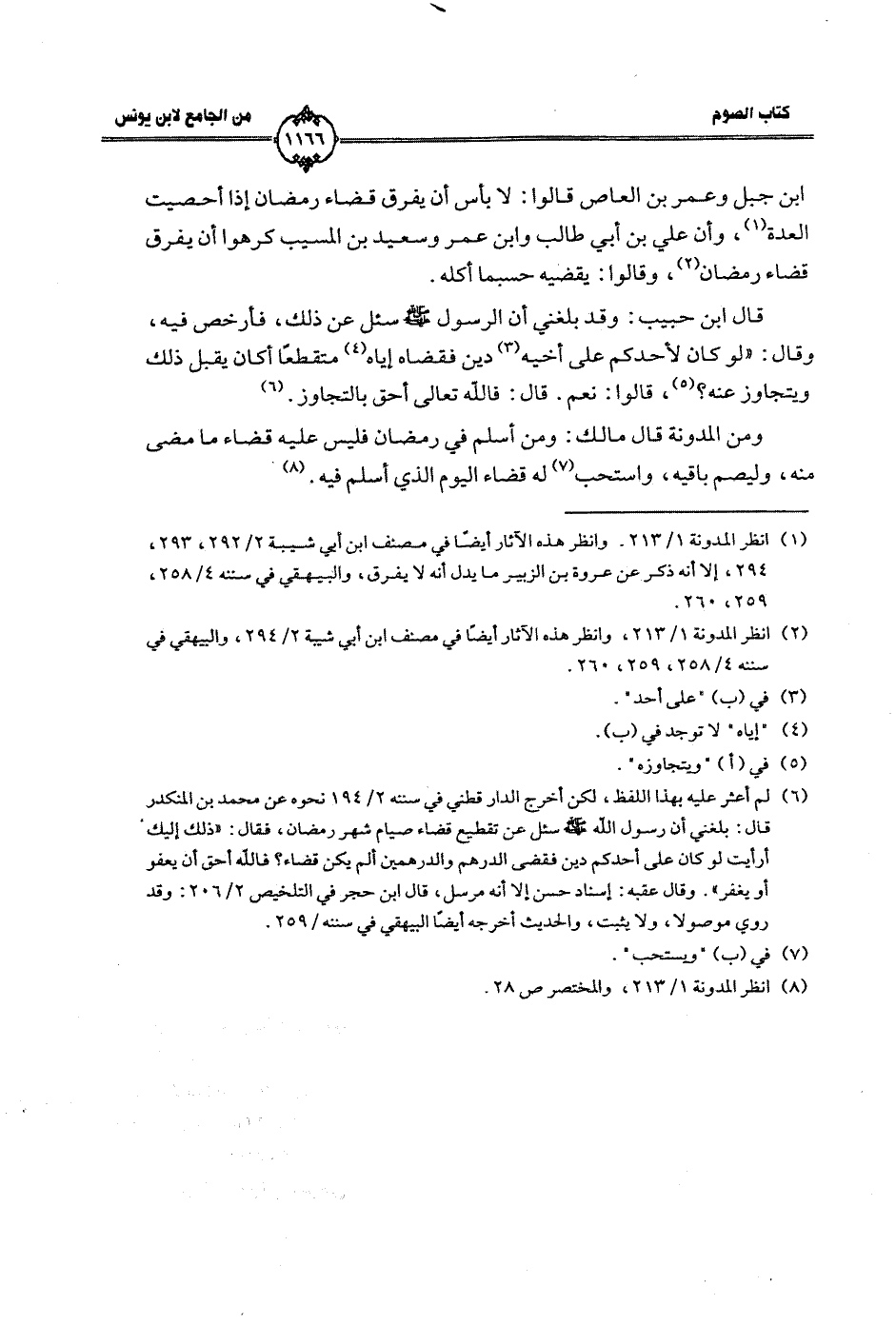قال ابن حبيب: وقد بلغني أن الرسول صلى الله عليه وسلم سئل عن ذلك، فأرخص فيه، وقال: ((لو كان لأحدكم على أخيه دين فقضاه إياه متقطعًا أكان يقبل ذلك ويتجاوز عنه؟، قالوا: نعم قال: فالله تعالى أحق بالتجاوز.