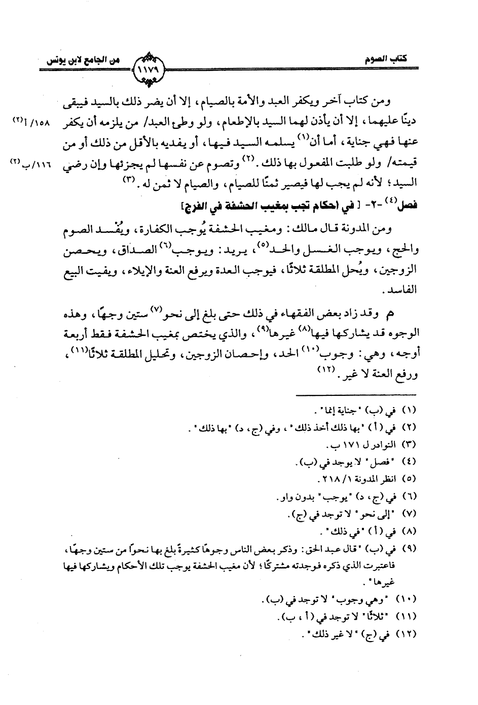 ومن المدونة قال مالك: ومغيب الحشفة يُوجب الكفارة، ويُفسد الصوم والحج، ويوجب الغسل والحد، يريد: ويوجب الصداق، ويحصن الزوجين، ويُحل المطلقة ثلاثاً، فيوجب العدة ويرفع العنة والإيلاء، ويفيت البيع الفاسد.