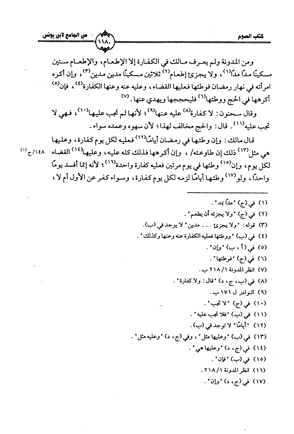 وقال سحنون: لا كفارة عليه عنها؛ لأنها لم تجب عليها، فهي لا تجب عليه. قال: والحج مخالف لهذا؛ لأن سهوه وعمده سواء.