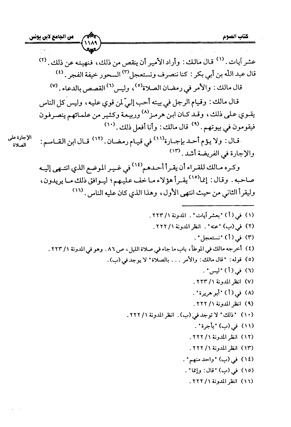 عشر آيات. قال مالك: وأراد الأمير أن ينقص من ذلك، فنهيته عن ذلك. قال عبد الله بن أبي بكر: كنا ننصرف ونستعجل السحور خيفة الفجر.