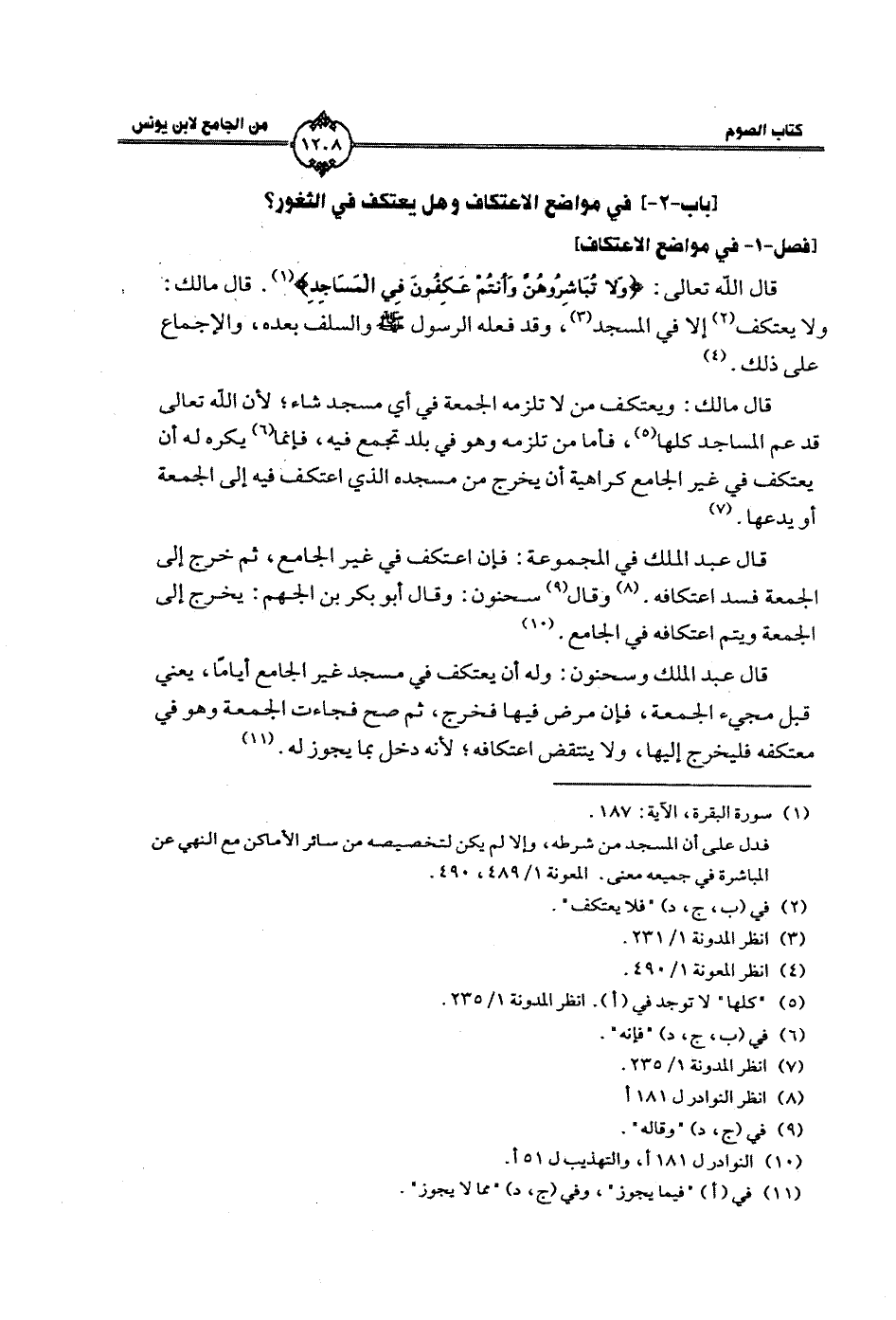 [باب -2 -] في مواضع الاعتكاف وهل يعتكف في الثغور؟
