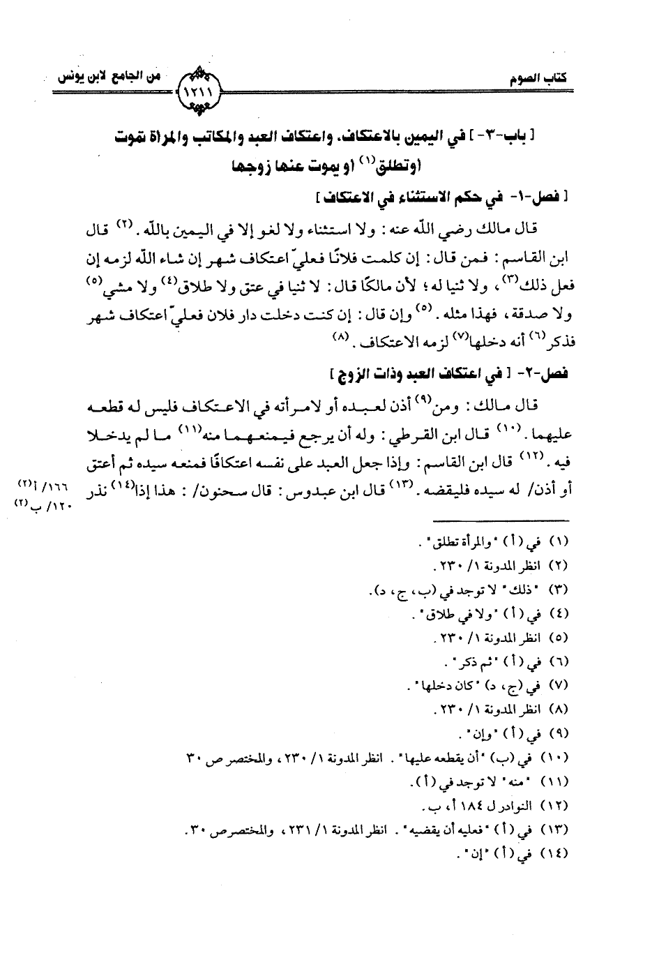 [باب-3 -] في اليمين بالاعتكاف. واعتكاف العبد والمكاتب والمرأة تموت أو تطلق أو يموت عنها زوجها