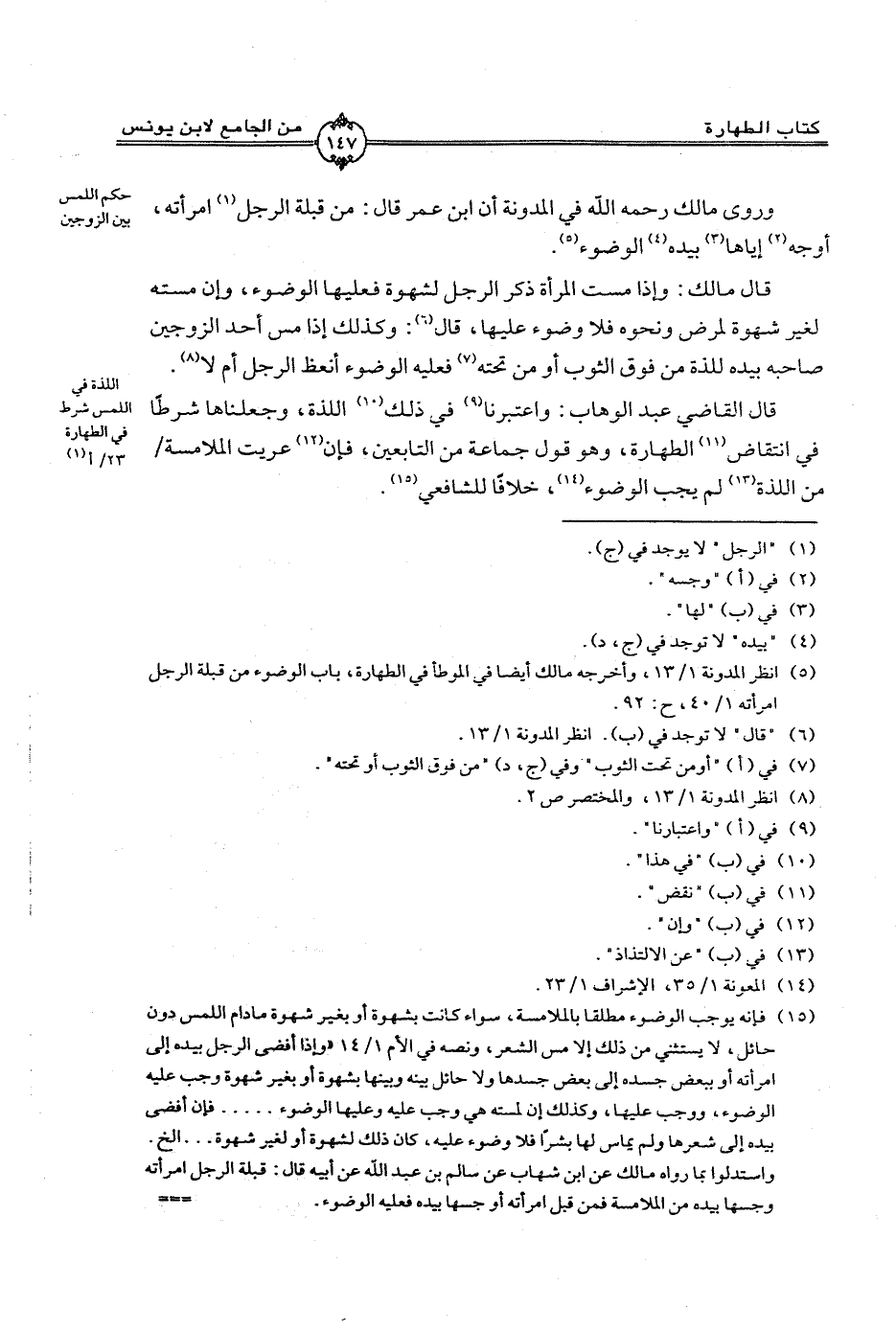 قال القاضي عبد الوهاب: واعتبرنا في ذلك اللذة، وجعلناها شرطًا في انتقاض الطهارة، وهو قول جماعة من التابعين، فإن عريت الملامسة / من اللذة، لم يجب الوضوء، خلافًا للشافعي.