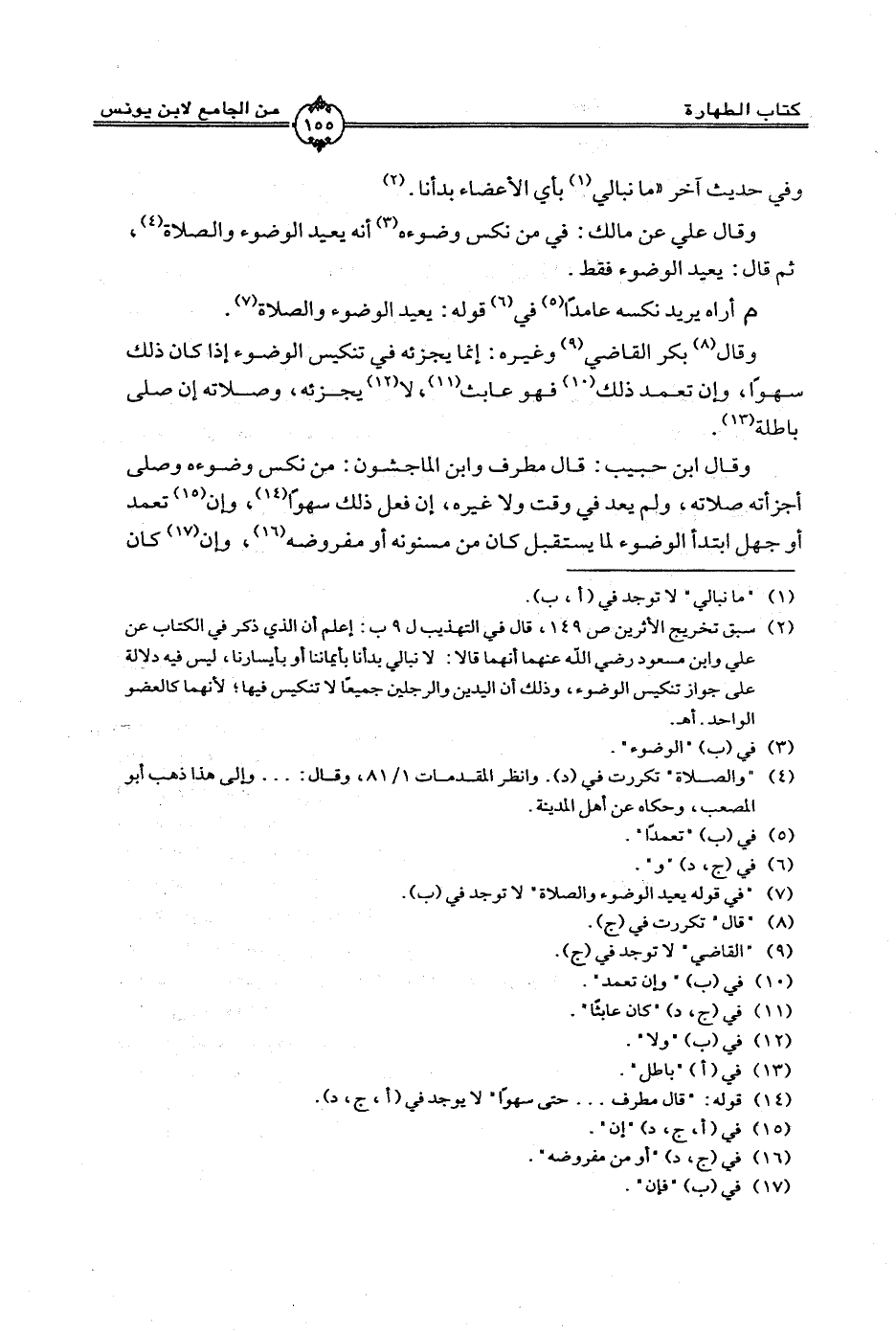 وقال ابن حبيب: قال مطرف وابن الماجشون: من نكس وضوءه وصلى أجزأته صلاته، ولم يعد في وقت ولا غيره، إن فعل ذلك سهوًا، وغن تعمد أو جهل ابتدأ الوضوء لما يستقبل كان من مسنونه أو مفروضه، وإن كان