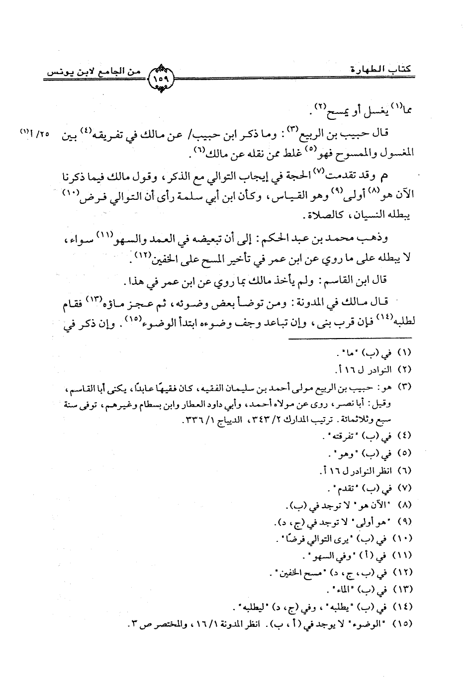 قال حبيب بن الربيع: وما ذكر ابن حبيب/ عن مالك في تفريقه بين المغسول والممسوح فهو غلط ممن نقله عن مالك.