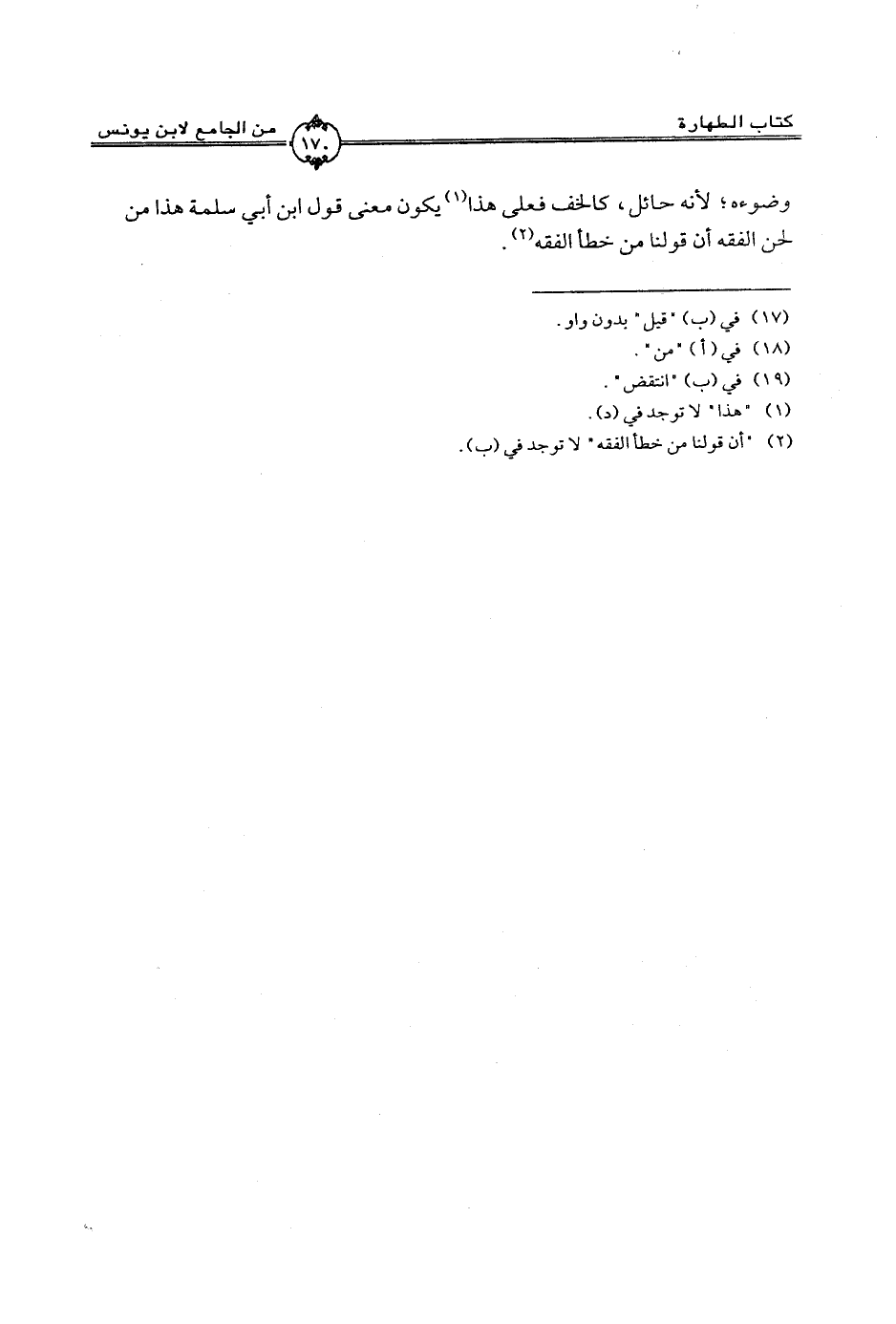 وضوءه؛ لأنه حائل، كالخف فعلى هذا يكون معنى قل ابن أبي سلمة هذا من لحن الفقه أن قولنا من خطأ الفقه.