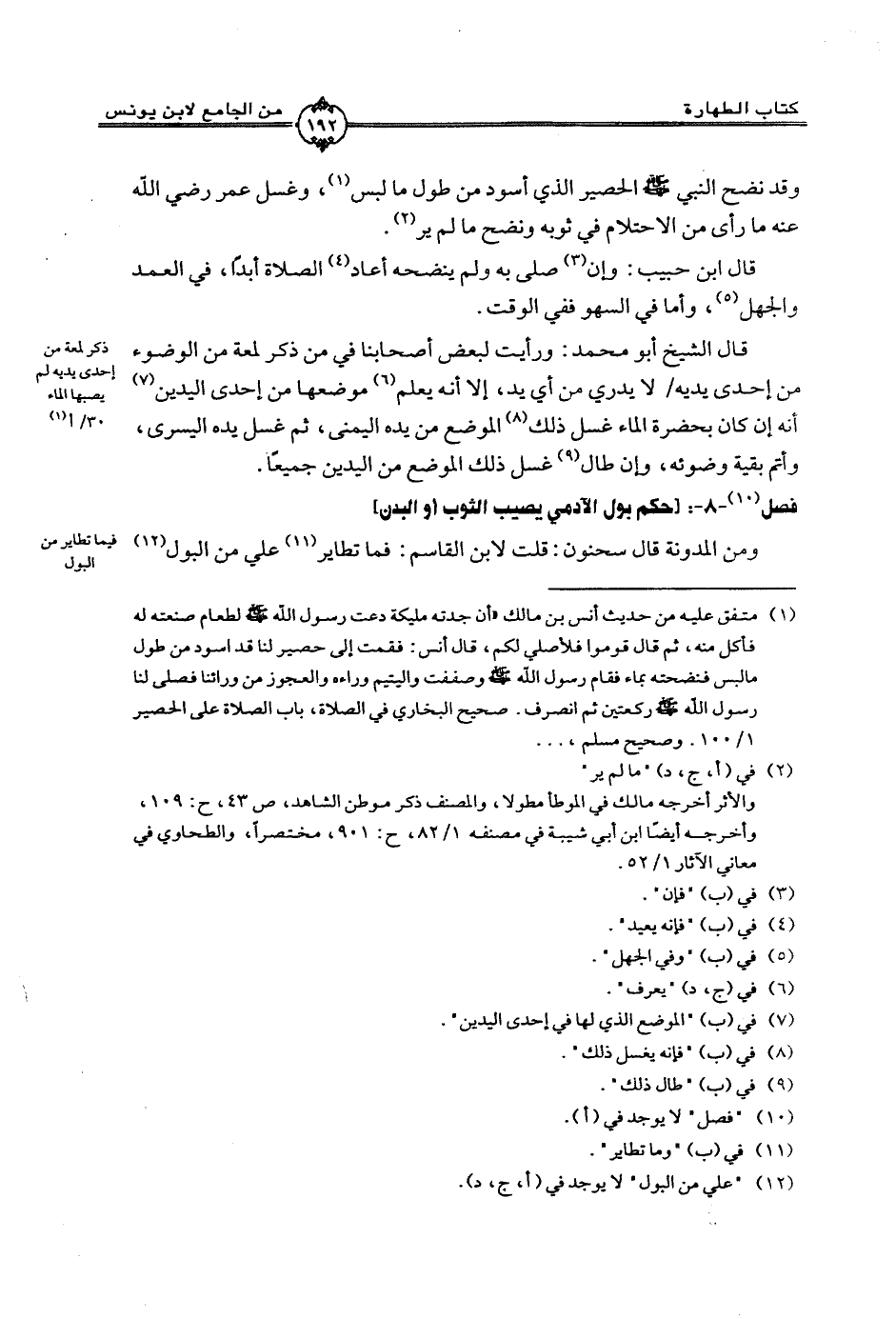 فصل-8:] حكم بول الآدمي يصيب الثوب أو البدن [
