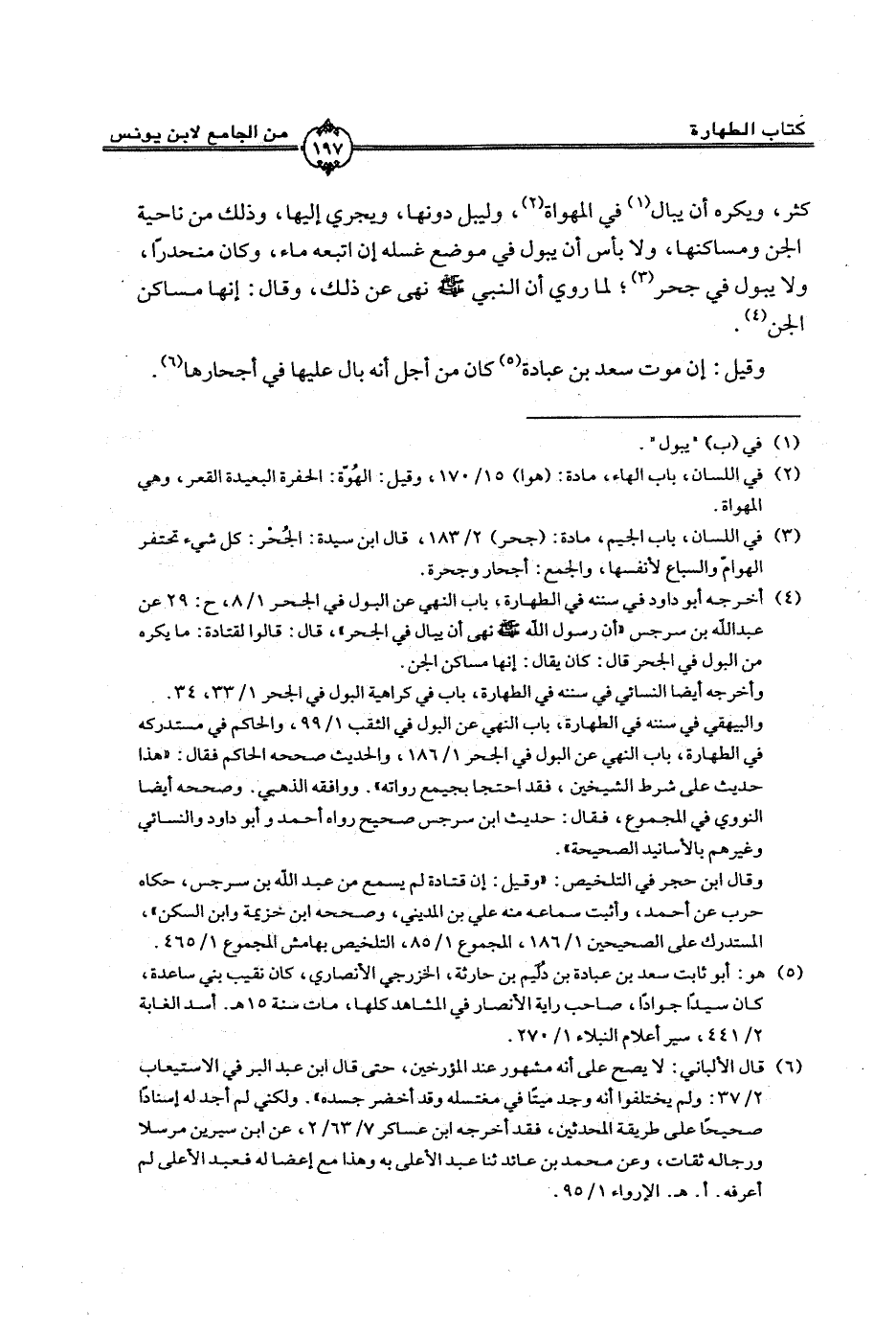 وقيل: إن موت سعد بن عبادة كان من أجل أنه بال عليها في أجحارها.