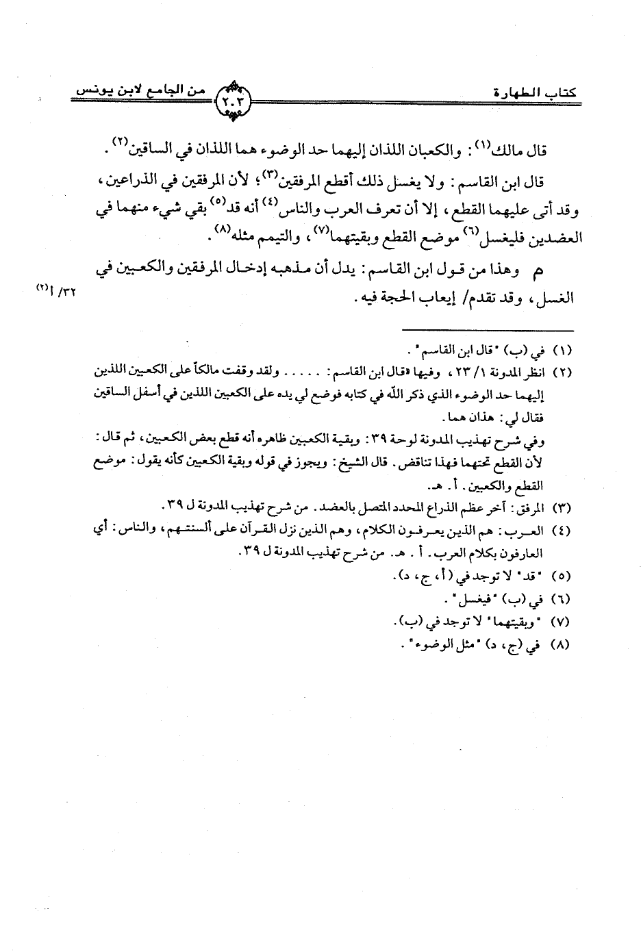 م وهذا من قول ابن القاسم: يدل أن مذهبه إدخال المرفقين والكعبين في الغسل، وقد تقدم/ إيعاب الحجة فيه.