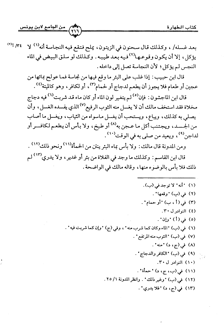 بعد غسله/، وكذلك قال سحنون في الزيتون، يملح فتقع فيه النجاسة أنه لا يؤكل، إلا أن يكون وقوعها فيه بعد طيبه. وكذلك لو سلق البيض في الماء النجس لم يؤكل؛ لأن النجاسة تصل إلى داخله.