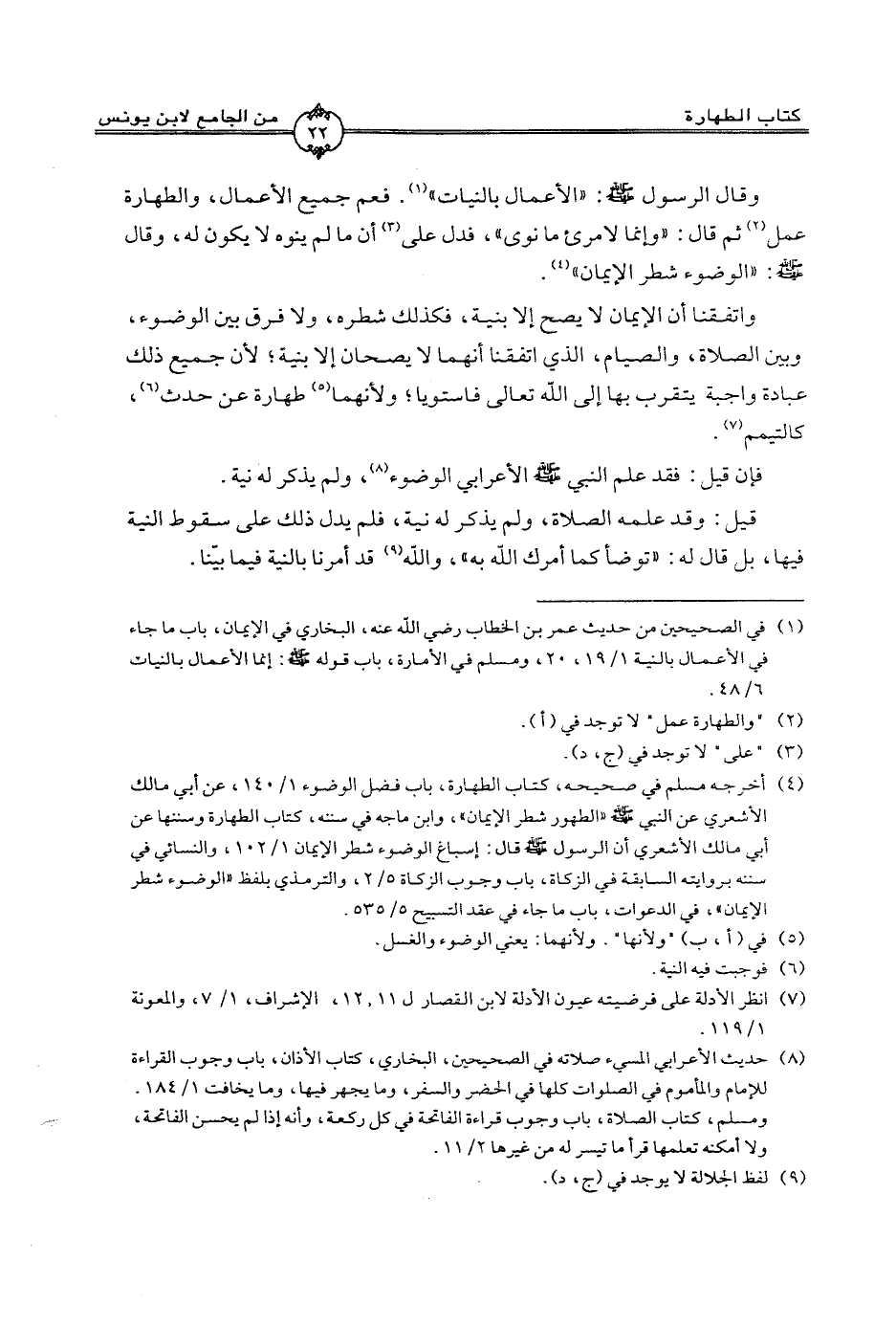 واتفقنا أن الإيمان لا يصح إلا بنية، فكذلك شطره، ولا فرق بين الوضوء، وبن الصلاة، والصيام، الذي اتفقنا إنهما لا يصحان إلا بنية؛ لان جميع ذلك عبادة واجبة يتقرب بها إلى الله تعالى فاستويا؛ ولأنهما طهارة عن حدث، كالتيمم.