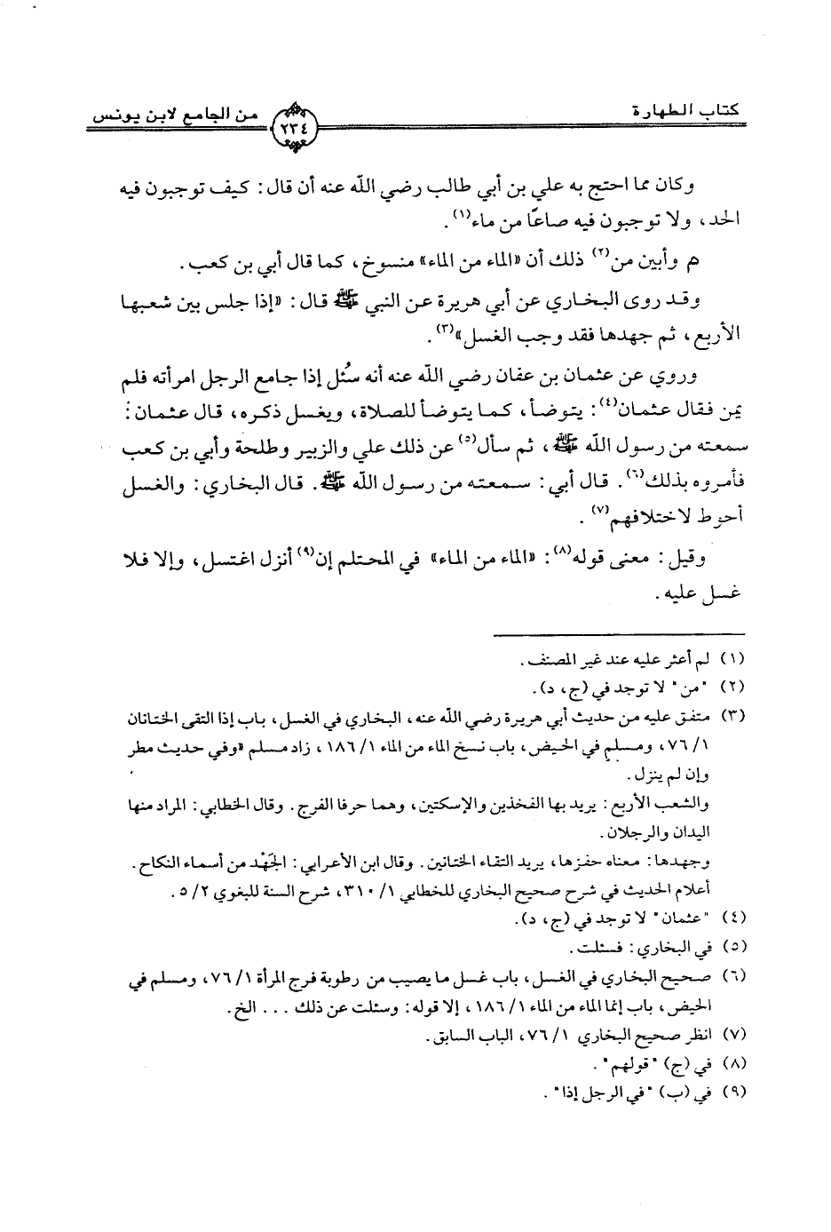وأبين من ذلك أن ((الماء من الماء)) منسوخ، كما قال أبي بن كعب.