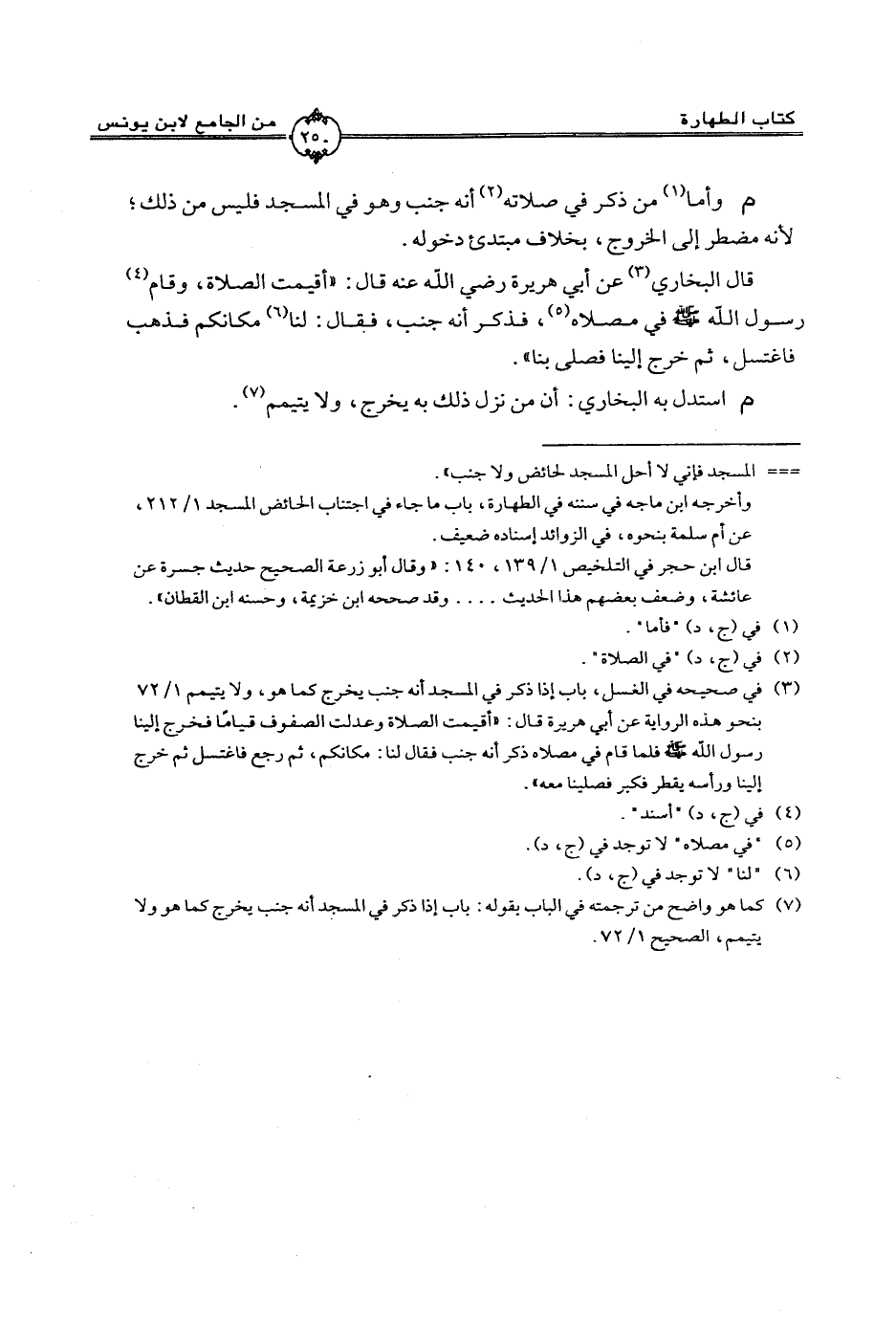 م وأما من ذكر في صلاته أنه جنب وهو في المسجد فليس من ذلك؛ لأنه مضطر إلي الخروج، بخلاف مبتدئ دخوله.