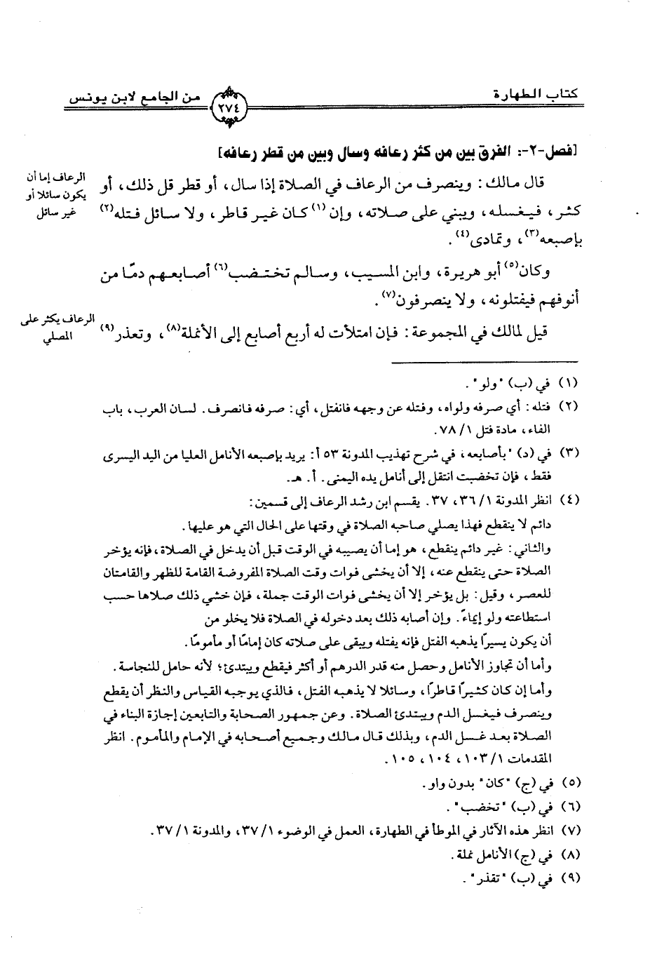 [فصل - 2 - : الفرق بين من كثر رعافه وسال وبين من قطر رعافه]