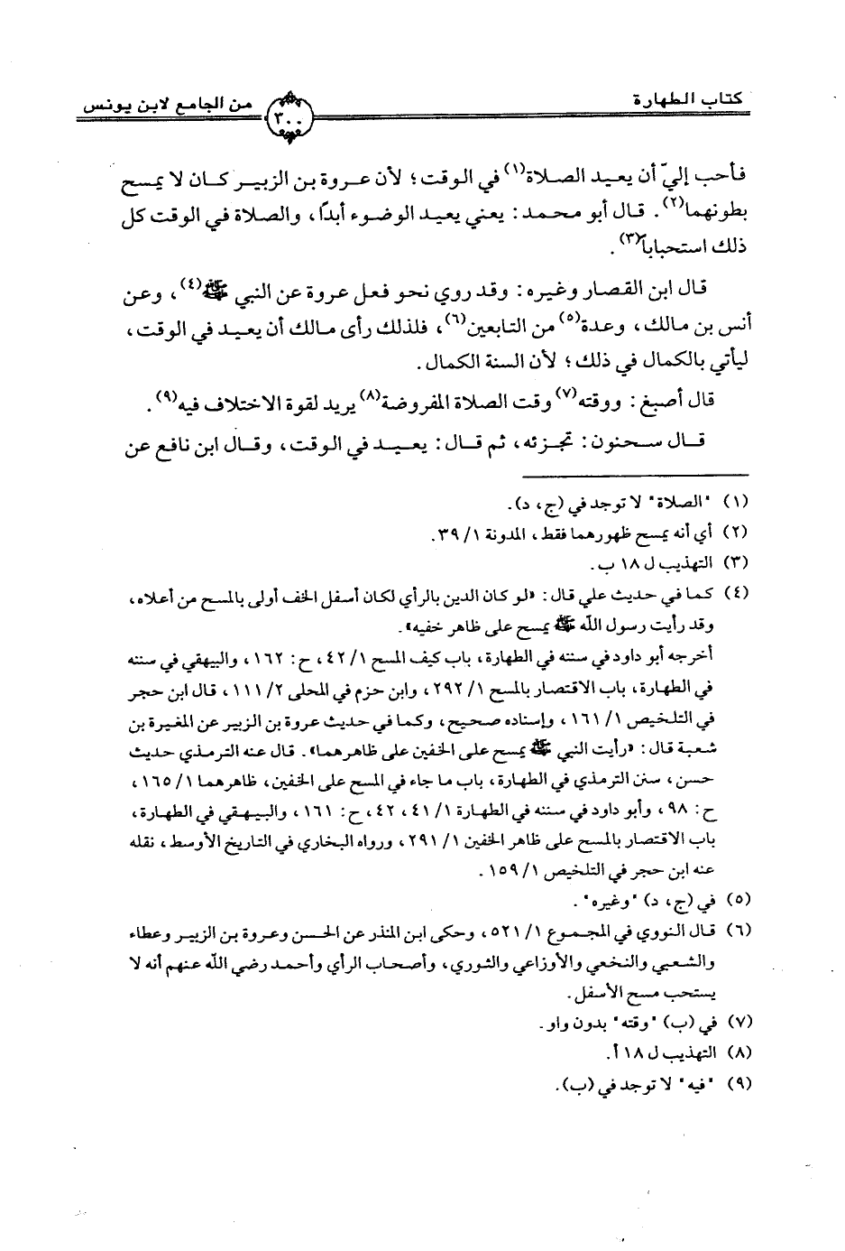 فأحب إليَّ أن يعيد الصلاة في الوقت؛ لأن عروة بن الزبير كان لا يمسح بطونهما. قال أبو محمد: يعني يعيد الوضوء أبدًا، والصلاة في الوقت كل ذلك استحبابًا.