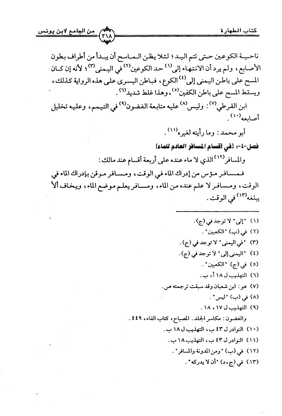 والمسافر الذي لا ماء عنده علي أربعة أقسام عند مالك: