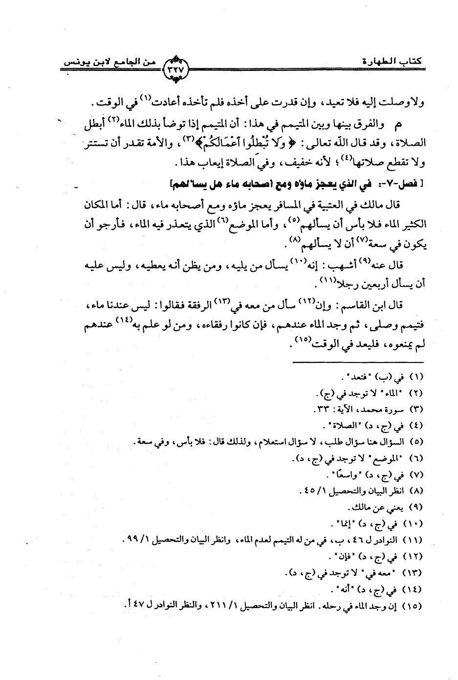[فصل -7 - : في الذي يعجز ماؤه ومع أصحابه ماء هل يسألهم]