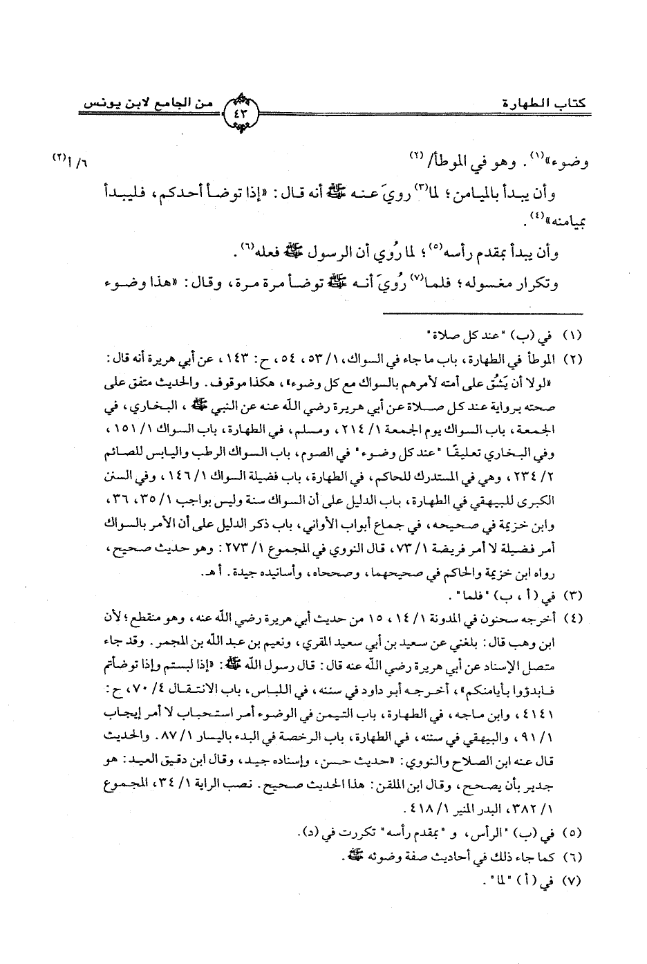 وأن يبدأ بالميامن؛ لما روىّ عنه صلى الله عليه وسلم أنه قال ((إن توضأ أحدكم، فليبدأ بميامنه)).