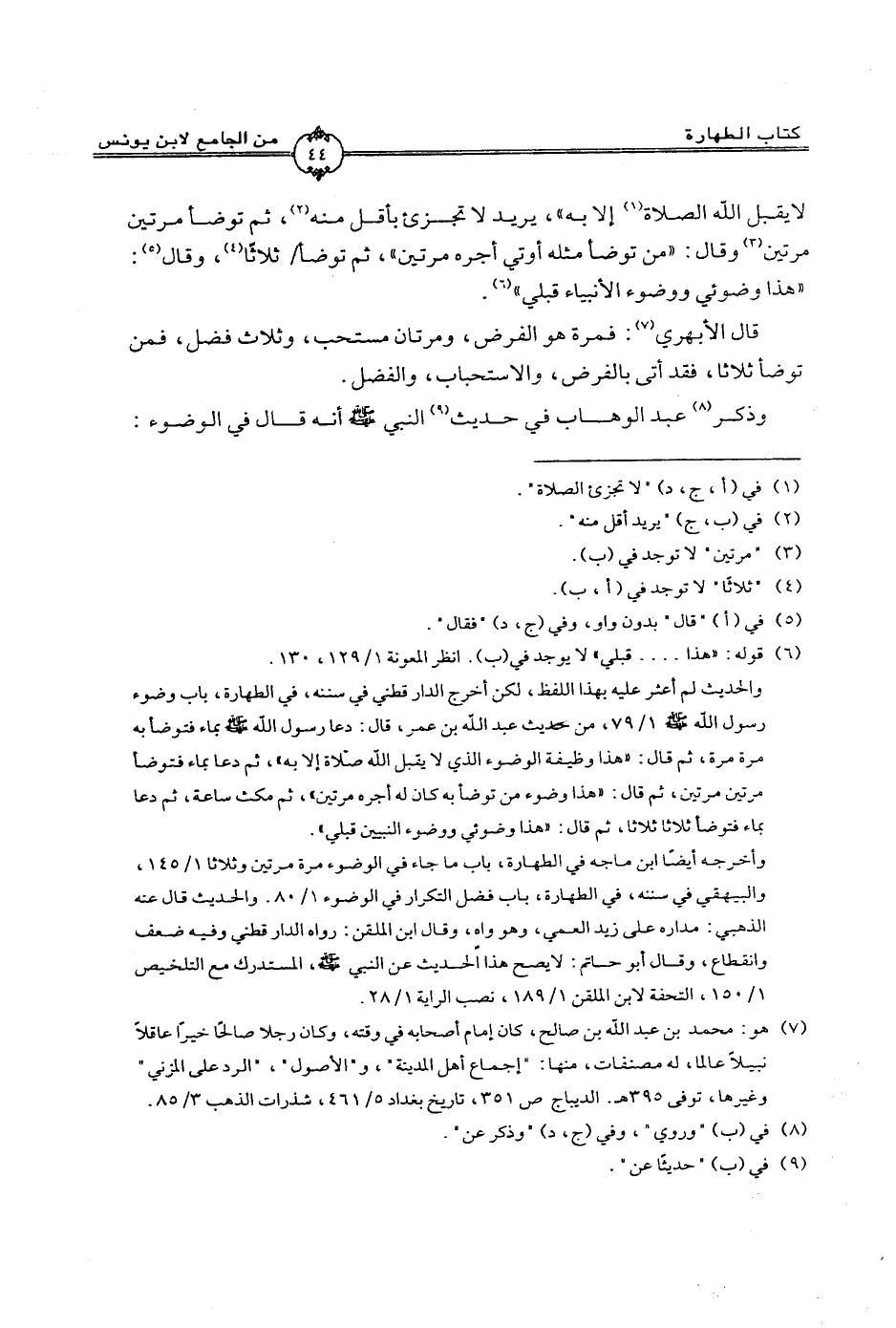 وذكر عبد الوهاب في حديث النبي صلى الله عليه وسلم أنه قال في الوضوء: