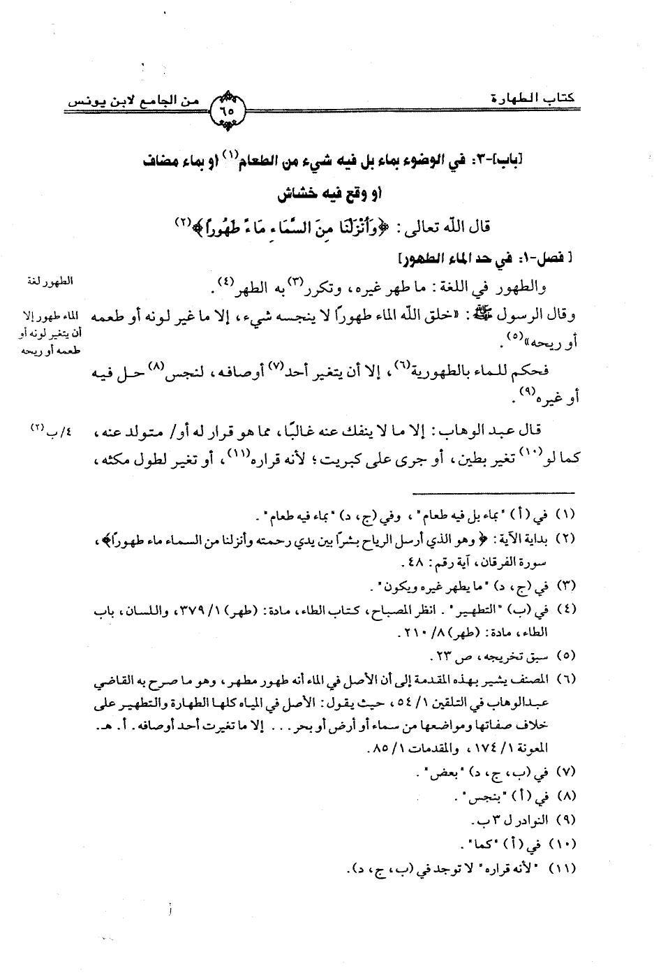 قال الله تعالى: (وأَنزَلْنَا مِنَ السَّمَاءِ مَاءً طَهُورًا)