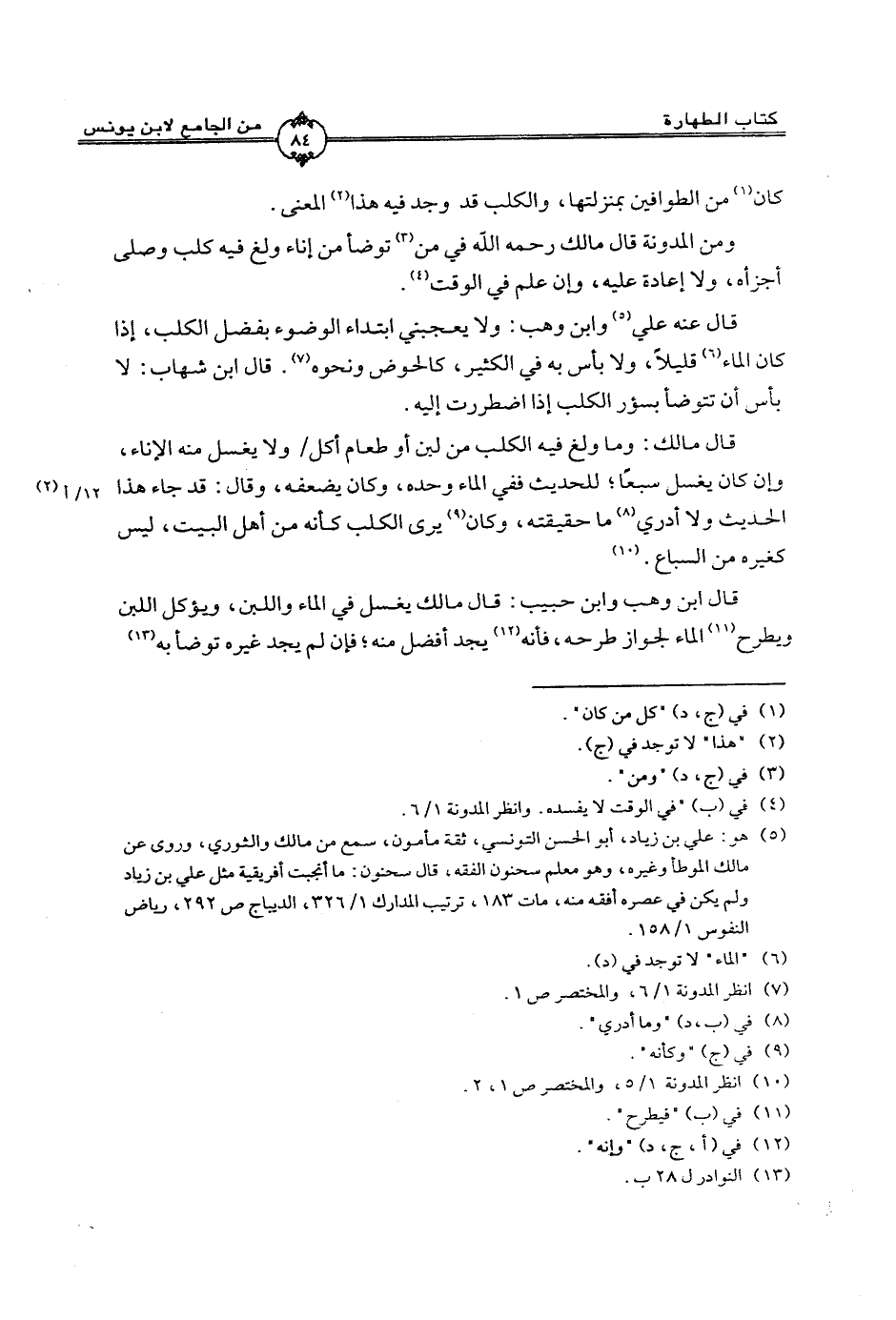 قال عنه علي وابن وهب: ولا يعجبني ابتداء الوضوء بفضل الكلب، إذا كان الماء قليلاً، ولا بأس به في الكثير كالحوض ونحوه. قال ابن شهاب: لا بأس أن تتوضأ بسؤر الكلب إذا اضطرت إليه.