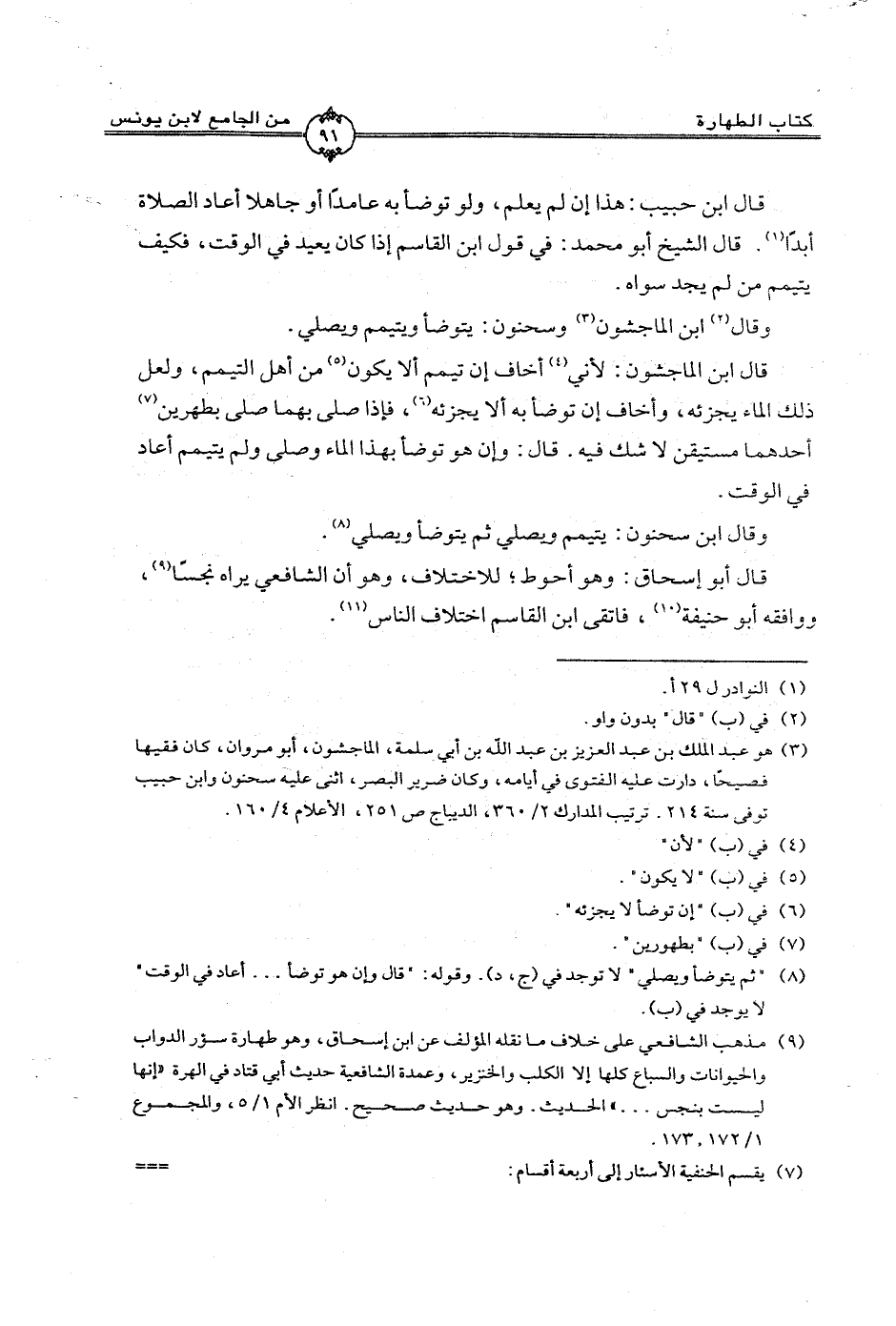 وقال ابن سحنون: يتيمم ويصلي ثم يتوضأ ويصلى.