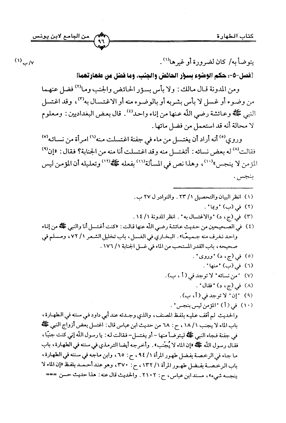 (فصل-5 - :حكم الوضوء بسؤر الحائض والجنب. وما فضل من طهارتهما (